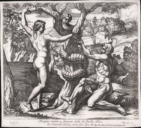 Decepta mulier a serpente tulit de fructu illius, et Comedit, deditg. viro suo. Acquaforte, da un soggetto d Raffaello. Della serie Sacrae Historiae Acta a Raphael Urbin in Vaticanis Xystis ad Picturae Miraculum Expressa. Esemplare nel terzo stato di quattro, con l’indirizzo di Pierre Mariette. La serie "Sacrae Historiae Acta a Raphael Urbin in Vaticanis Xystis ad Picturae Miraculum Expressa" riproduce la sequenza completa degli affreschi realizzati da Raffaello Sanzio nelle Logge Vaticane. Si compone di 54 tavole: una dedica a Raffaello, un frontespizio con un testo dedicatorio a Renard e cinquantadue tavole che riproducono gli affreschi di Raffaello. La dedica e il frontespizio non sono numerati, mentre le tavole che riproducono gli affreschi sono numerate da 1 a 52. La serie fu incisa da Nicolas Chaperon e pubblicata a Roma nel 1649. Il ciclo di affreschi della Logge, noto anche come Bibbia di Raffaello, è stato ampiamente riprodotto nel corso del XVII secolo: Badalocchio e Lanfranco nel 1605/06, Aloisi Galanini nel 1613, Borgianni nel 1615, Villamena nel 1626, Aquila e Fantetti nel 1675. Tra i migliori allievi di Simon Vouet, Nicolas Chaperon si trasferì a Roma nel 1642 e si affiancò allo stile classicista di Nicolas Poussin. Fu proprio quest'ultimo pittore che, tramite l'incarico ricevuto dal re di Francia, gli commissionò le 54 lastre incise raffiguranti le più famose pitture di Raffaello. Se ne conoscono 4 stati presentati con due frontespizi (come da tradizione quindi 52 riproducenti i dipinti e due frontespizi): il più raro presenta nel frontespizio le parole Ille ego sum Raphael e la seconda tavola senza la dedica, il secondo ha la dedica e l'aggiunta cum Privilegio Regis, il terzo con l'aggiunta nel cippo presente nel frontespizio Lutetiae Parisiorum e con l'excudit del Mariette, infine il quarto ritoccato e pubblicato tra Sei e Settecento. Ogni tavola è doppiamente firmata, R.V.I. ovvero Raphael Urbinas Invenit e N.C.F. equivalente di Nicolas Chaperon Fecit. Le tavole sono fin dalla data della loro esecuzione considerate le più fedeli agli affreschi e le più vicine al gusto classico in voga in quegli anni tra Roma e Parigi. Acquaforte impressa su carta vergata coeva, rifilata al rame o con sottile margine, in ottimo stato di conservazione. Bibliografia Robert-Dumesnil 1835-71, Le Peintre-Graveur Français (VI.216.1); Laveyssière, Jacquot and Kazerouni, 'Nicolas Chaperon', 1999, pp.159-171. Decepta mulier a serpente tulit de fructu illius, et Comedit, deditg. viro suo. Etching, from a subject d Raphael. From the series Sacrae Historiae Acta a Raphael Urbin in Vaticanis Xystis ad Picturae Miraculum Expressa. Example in the third state of four, with the address of Pierre Mariette. The series 'Sacrae Historiae Acta a Raphael Urbin in Vaticanis Xystis ad Picturae Miraculum Expressa' reproduces the complete series of frescoes painted by Raphael in the Logge. It consists of 54 plates: a dedication to Raphael, a title-page with a dedicatory text to Renard, and fifty-two plates reproducing Raphael's frescoes. The dedication and the title-page are not numbered, while the plates reproducing the frescos are numbered from 1 to 52. The series was engraved by Nicolas Chaperon and published in Rome in 1649. The series of frescoes in the Logge, also known as Raphael's Bible, has been widely reproduced throughout the 17th century: Badalocchio and Lanfranco in 1605/06, Aloisi Galanini in 1613, Borgianni in 1615, Villamena in 1626, Aquila and Fantetti in 1675. One of Simon Vouet's best pupils, Nicolas Chaperon moved to Rome in 1642 and joined the classicist style of Nicolas Poussin. It was the latter painter who, through the commission he received from the king of France, commissioned from him the 54 engraved plates depicting Raphael's most famous paintings. Four are known to have been presented with two frontispieces (as per tradition therefore 52 reproducing the paintings and two frontispieces): the rarest one presents in the frontispiece the words Ille ego sum Raphael and the second plate without the dedication, the second has the dedication and the addition cum Privilegio Regis, the third with the addition in the cippus present in the frontispiece Lutetiae Parisiorum and with the excudit of Mariette, finally the fourth retouched and published between the seventeenth and eighteenth centuries. Each plate is doubly signed, R.V.I. or Raphael Urbinas Invenit and N.C.F. equivalent of Nicolas Chaperon Fecit. The plates are from the date of their execution considered the most faithful to the frescoes and the closest to the classical taste in vogue in those years between Rome and Paris. Etching impressed on contemporary laid paper, trimmed to copper or thin margin, in very good condition. Bibliografia Robert-Dumesnil 1835-71, Le Peintre-Graveur Français (VI.216.1); Laveyssière, Jacquot and Kazerouni, 'Nicolas Chaperon', 1999, pp.159-171. Cfr.
