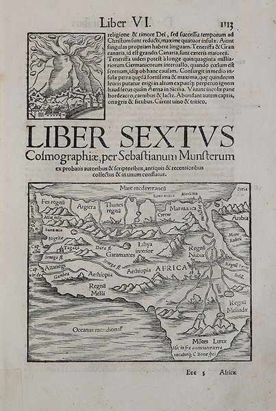 Tavola tratta dalla ' Cosmographiae Universalis, edizione in latino, Basilea, metà del XVI secolo.La ' Cosmographiae Universalis ' di Sebastian Münster (1488-1552), stampata per la prima volta Basilea nel 1544 dall’editore Heinrich Petri, venne più volte aggiornata e aumentata di nuove carte geografiche e rappresentazioni urbane nelle sue numerose edizioni che arrivano all’inizio del secolo successivo. Münster aveva lavorato a raccogliere informazioni al fine di ottenere un'opera che non deludesse le aspettative e, dopo un'ulteriore pubblicazione in tedesco abbellita da 910 stampe su legno, giunse nel 1550 all'edizione definitiva in latino, illustrata da 970 silografie. Vi furono poi numerose edizioni in diverse lingue, fra cui latino, francese, italiano, inglese e ceco. Dopo la sua morte di Münster (1552), Heinrich Petri prima, e il figlio Sebastian poi, continuarono la pubblicazione dell’opera. La ' Cosmographia universalis ' fu uno dei libri più popolari e di successo del XVI secolo, e vide ben 24 edizioni in 100 anni: l'ultima edizione tedesca venne pubblicata nel 1628, molto tempo dopo la morte dell'autore. La ' Cosmographia ' conteneva non solo le ultime mappe e vedute di tutte le città più famose, ma anche una serie di notizie enciclopediche di dettagli relative al mondo conosciuto, e sconosciuto. Il particolare successo anche commerciale di quest'opera fu dovuto in parte alle belle incisioni (tra i cui autori si possono citate Hans Holbein il Giovane, Urs Graf, Hans Rudolph Manuel Deutsch, David Kandel). Silografia inserita in un foglio che contiene anche parte descrittiva, bella coloritura a mano, in buone condizioni. Plate taken from the ' Cosmographiae Universalis, Latin edition, Basel, half of the 16th century. The ' Cosmographiae Universalis ' of Sebastian Münster (1488-1552), printed for the first time in Basel in 1544 by the publisher Heinrich Petri, was updated several times and increased with new maps and urban representations in its many editions until the beginning of the next century. Münster had worked to collect information in order to obtain a work that did not disappoint expectations and, after a further publication in German embellished with 910 woodblock prints, arrived in 1550 to the final edition in Latin, illustrated by 970 woodcuts. There were then numerous editions in different languages, including Latin, French, Italian, English and Czech. After his death in Münster (1552), Heinrich Petri first, and then his son Sebastian, continued the publication of the work. The ' Cosmographia universalis ' was one of the most popular and successful books of the 16th century, and saw as many as 24 editions in 100 years: the last German edition was published in 1628, long after the author's death. The ' Cosmographia ' contained not only the latest maps and views of all the most famous cities, but also a series of encyclopedic details related to the known, and unknown, world. The particular commercial success of this work was due in part to the beautiful engravings (among whose authors can be mentioned Hans Holbein the Younger, Urs Graf, Hans Rudolph Manuel Deutsch, David Kandel). Woodcut, beautiful hand-coloring, in good condition. Cfr.