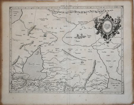 Mappa tolemaica incentrata centra su una regione storica intrisa di leggenda, di grande importanza nel primo sviluppo del commercio tra l'Asia e l'Europa, la regione della Via della Seta, tra l'Iperborei, le montagne del Caucaso e comprende una parte del Mar Caspio. Quelle regioni dell'Europa orientale che confinano con il Mar Nero sono raffigurate e denominate secondo antichi regni e popoli. Il Mar Nero ha una forma interessante. Costantinopoli non è nominata, ma il Bosforo sì. Si notano numerosi riferimenti agli Sciiti. Vengono citate anche numerose altre antiche civiltà, inclusi i Sarmati, il regno di Mitridati e le Amazzoni, ma erroneamente collocati nella regione dell’Anatolia. La Colchide è mostrata a sud di un'Anatolia molto deforme. ' Mappa tratta dal ' Cl. Ptolemaei Alexandrini, Geographiae Libri Octo, ' pubblicata prima a Colonia da Gottfried von Kempen (1578) e poi ristampata dallo stesso editore nel 1584 (Van der Krogt 1, 502) e poi da Isaac Elsevier per il ' Theatrum Geographiae veteris ' di Petrus Bertius (Leyden 1618). Di tutte le edizioni di Tolomeo, quella di Gerard Kremer (Mercatore), pubblicata nel 1578, e forse tecnicamente la più bella. A questo punto la ' Geografia ' di Tolomeo perdeva però ogni pretesa di “attualità”, laddove lo scopo di Mercatore era quello di produrre un atlante del mondo classico che servisse da complemento al suo atlante moderno (per tale ragione egli aveva tentato di recuperare la forma originale dell’atlante tolemaico, scartandone le moderne accrezioni). L'interpretazione di Mercatore del testo tolemaico, per le 28 carte che illustrano la sua ' Geographia ' è stata, quindi, una delle più veritiere. Egli aveva passato 13 anni a ricercare, disegnare e incidere le carte, rinunciando anche alla pubblicazione delle sue carte “moderne”. Questo esemplare proviene dal ' Theatrum Geographia Veteris ' di Petrus Bertius edita a Leida nel 1618, che combina il Tolomeo di Mercator, le 8 tavole del Moretus per rappresentare la ' Tabula Peutingeriana ' e 14 mappe storiche delle regioni d'Europa derivate dal ' Parergon ' di Ortelius. Acquaforte, finemente colorata a mano, in ottime condizioni. ' This Ptolemaic map focuses on a historical region steeped in legend, one of great importance in the early development of trade between Asia and Europe, the Silk Road region, between the Hyperborei and Caucus Mountains. It includes a portion of the Caspian Sea. Those regions of eastern Europe which border the Black Sea are depicted, and named according to ancient kingdoms and peoples. The Black Sea has an interesting shape. Constantinople is not named, but the Bosphorus is. A number of references to the Scythians are noted. ' A number of other ancient civilizations are also referred to including the Sarmatians, the kingdom of Mithridatis, and the Amazons are named, but in the wrong region or Anatolia. Colchis is shown to the south of a very misshapen Anatolia. Numerous mountain ranges and river systems are shown in detail. ' Map taken from the ' Cl. Ptolemaei Alexandrini, Geographiae Libri Octo, ' first published in Cologne by Gottfried von Kempen (1578) and then reprinted by the same publisher in 1584 (Van der Krogt 1, 502) and then by Isaac Elsevier for the Petrus Bertius’ ' Theatrum Geographiae veteris ' (Leyden 1618). Mercator's interpretation of the 28 Ptolemaic text was possibly one of the truest undertaken up until that time. He had spent 13 years researching, drawing and engraving the maps at much commercial sacrifice to himself, having seen Ortelius's ' Theatrum ' and De Jodes ' Speculum ' published, to become both technical and commercial successes. In later life he devoted himself to his edition of the maps in Ptolemy's ' Geographia, reproduced in his own engraving as nearly as possible in their original form. This example comes from the ' Theatrum Geographia Veteris ' of Petrus Bertius published in Leiden in 1618, which combines Mercator's Ptolemy, the 8 plates of Moretus to represent the ' Tabula Peutingeriana ' and 14 historical maps of the regions of Europe derived from the ' Parergon ' of Ortelius. Copperplate with fine later hand colour, in good condition. Cfr.