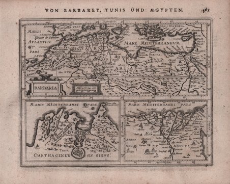 Mappa in miniatura tratta dall’Atlas minor, Das ist: Eine kurtze, jedoch gründliche Beschreibung der gantzen Weldt. ' Incisa da Abraham Goos o Pieter van den Keere, venne pubblicata per la prima volta da Johannes Janssonius nel 1628. L'Atlas Minor ' di Gerard Mercator fu concepito da Jodocus Hondius nel 1607 come edizione ridotta del popolare ' Atlas ' di Mercator in folio. L'Atlas Minor ' doveva essere più grande di un atlante tascabile, ma più piccolo di un atlante in folio, e aveva un prezzo adeguato a raggiungere una diversa clientela. Ci furono tre diverse edizioni dell'Atlas Minor ' pubblicate da autori diversi, ognuna con una nuova serie di mappe incise in rame. Jodocus Hondius pubblicò la prima edizione tra il 1607 e il 1621, e successivamente vendette le tavole in rame ad editori inglesi; tra il 1635-39 fu pubblicata un'edizione inglese dell’opera utilizzando molte delle tavole originali. Johannes Janssonius volle competere anche nel mercato dei “piccoli” atlanti e fece incidere nuove lastre di rame da Pieter van den Keere e Abraham Goos per la propria edizione dell’Atlas Minor, pubblicata in più lingue tra il 1628 e il 1651 La terza e ultima versione fu pubblicata da Jan Evertsz. Cloppenburch (o Cloppenburg) tra il 1630 e il 1734, con nuove mappe incise principalmente sempre da Pieter van den Keere. "Shortly after the publication of the big folio-atlases the need was apparantly felt for a smaller-sized atlas, one that would be handier, and, above all, cheaper, so that a larger public might have access to the use of maps. The publication of the ' Atlas Minor ' appeared to be a great success for Hondius; the first Latin edition was in great demand. The copperplates of the first atlases minor were most almost certainly engraved by Jodocus Hondius himself. After 1621, the copperplates of the ' Atlas Minor ' were sold to a London editor. Firstly, they appeared in ' Purchas his Pilgrinies, printed in 1625 by William Stansby for Henry Featherstone. Next they were used for the translation of the Mercator-atlas, printed in small folio under the title ' Historia mundi, or Mercators atlas, ' by Thomas Cotes for Michael Sparke and Samuel Cartwight in 1635". (cf. Koeman II Me 191). "As with the ' Theatrum ' of Abraham Ortelius, Jodocus Hondius planned a reduced size version of Gerard Mercator's folio atlas. Just one year after his first edition he published his Latin text ' Atlas Minor ' in collaboration with Jan Jansz. and Cormelis Claesz. The arrangement between these three is not understood clearly but Hondius is believed to have been the owner of the copperplates. Cartographically this is taken directly from the folio maps by Hondius in 1606 [.]. with the inevitable loss of detail due to the reduction” (cf. Burden, ' The Mapping of North America, 153). ' Johannes Janssonius (1588-1664) era figlio di un omonimo tipografo, editore e libraio di Arnhem. Nel 1612 sposò Elisabetta Hondius, figlia di Jodocus Hondius I, e nello stesso anno fondò una propria casa editrice ad Amsterdam. Alla morte di Jodocus I, nello stesso anno, iniziò ad aiutare la vedova di Hondius a continuare la pubblicazione dell'atlante di Mercatore e Hondius. Sia la vedova di Hondius, Colette, sia il figlio maggiore di Hondius, Jodocus II, morirono nel 1629; Janssonius unì quindi le forze con il figlio minore di Hondius, Henricus, per una revisione dell'Atlas Novus, a partire dal 1638. Acquaforte, in ottimo stato di conservazione. Dall’edizione tedesca dell’Atlas Minor, stampata ad Amsterdam nel 1648. Bibliografia Koeman IIIB, 352:33. A miniature map taken from ' Atlas minor, Das ist: Eine kurtze, jedoch gründliche Beschreibung der gantzen Weldt. ' Engraved by Abraham Goos or Pieter van den Keere, first issued by Johannes Janssonius in 1628. Mercator's ' Atlas Minor ' was conceived by Jodocus Hondius in 1607 as a reduced-sized edition of the popular folio-sized Mercator Atlas. The ' Atlas Minor ' was intended to be larger than a pocket atlas, yet smaller than the folio atlas, and were priced accordingly to reach a new market. There were three different editions of the ' Atlas Minor ' published by different authors, each with a new set of copperplates. Jodocus Hondius published the first edition from 1607-1621, and subsequently sold the copperplates to parties in England between 1621-1625, after which an English edition was published using many of the original plates in 1635-39. Johannes Jansson wanted to compete in the small atlas market as well, and had new copperplates engraved by Pieter van den Keere and Abraham Goos for his own edition published in multiple languages between 1628-51. The third and final edition was published by Jan Evertsz. Cloppenburch (or Cloppenburg) between 1630-1734 (some without text), with new maps engraved primarily by Pieter van den Keere. "Shortly after the publication of the big folio-atlases the need was apparantly felt for a smaller-sized atlas, one that would be handier, and, above all, cheaper, so that a larger public might have access to the use of maps. The publication of the ' Atlas Minor ' appeared to be a great success for Hondius; the first Latin edition was in great demand. The copperplates of the first atlases minor were most almost certainly engraved by Jodocus Hondius himself. After 1621, the copperplates of the ' Atlas Minor ' were sold to a London editor. Firstly, they appeared in ' Purchas his Pilgrinies, printed in 1625 by William Stansby for Henry Featherstone. Next they were used for the translation of the Mercator-atlas, printed in small folio under the title ' Historia mundi, or Mercators atlas, ' by Thomas Cotes for Michael Sparke and Samuel Cartwight in 1635". (cf. Koeman II Me 191). "As with the ' Theatrum ' of Abraham Ortelius, Jodocus Hondius planned a reduced size version of Gerard Mercator's folio atlas. Just one year after his first edition he published his Latin text ' Atlas Minor ' in collaboration with Jan Jansz. and Cormelis Claesz