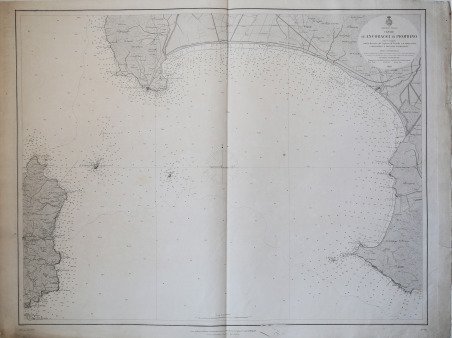 Carta nautica stampata dall’Istituto Idrografico della Marina. Aggiornata al 1886. La storia dell'Istituto Idrografico della Marina inizia pochi anni dopo l'unificazione nazionale con la creazione a Livorno, nel 1875, dell'Ufficio Centrale per il Servizio Scientifico della Regia Marina, dal quale avrebbero dovuto dipendere Uffici Dipartimentali eredi delle funzioni di elaborazione cartografica proprie delle istituzioni preunitarie. Fu invece creato il solo Ufficio Dipartimentale di Genova, presso il Forte San Giorgio, che a sua volta lasciò il posto, nel 1872, dall'ente cartografico nazionale denominato Ufficio Idrografico della Regia Marina. Nel 1899 tale denominazione fu trasformata in quella attuale di Istituto Idrografico della Marina. L'istituto fu fondato con regio decreto il 26 dicembre 1872 e alla sua guida fu chiamato il capitano di fregata, matematico e idrografo Giovan Battista Magnaghi, con il compito di eseguire il rilievo idrografico dei mari italiani e di produrre la documentazione nautica nazionale. Nel dopoguerra, oltre a ricognizioni per procedere all'aggiornamento delle carte nautiche, venne realizzata una nuova rete di triangolazione costiera. Incisione su zinco, con margini, in buono stato di conservazione. Bibliografia Amedeo Benedetti, L'Istituto Idrografico della Marina, in Charta Geographica, 93, ottobre 2007, pp. 12–13; Paola Presciuttini, L'Istituto Idrografico della Marina in Forte San Giorgio, Genova, I.I.M., 1995. The history of the Istituto Idrografico della Marina began a few years after the national unification with the creation in Livorno, in 1875, of the Ufficio Centrale per il Servizio Scientifico della Regia Marina, which should have depended on Departmental Offices heirs of the functions of cartographic processing of pre-unitary institutions. It was instead created only the Ufficio Dipartimentale di Genova, at Forte San Giorgio, which in turn left the place, in 1872, by the national mapping body called Ufficio Idrografico della Regia Marina. In 1899 this name was changed to the current name of Istituto Idrografico della Marina. ' The institute was founded by royal decree on 26 December 1872 and at its head was called the frigate captain, mathematician and hydrographer Giovan Battista Magnaghi, with the task of performing the hydrographic survey of the Italian seas and to produce the national nautical documentation. After the war, in addition to reconnaissance to update the nautical charts, a new coastal triangulation network was created. Engraving on zinc, with margins, in good condition. Bibliografia Amedeo Benedetti, L'Istituto Idrografico della Marina, in Charta Geographica, 93, ottobre 2007, pp. 12–13; Paola Presciuttini, L'Istituto Idrografico della Marina in Forte San Giorgio, Genova, I.I.M., 1995. Cfr.