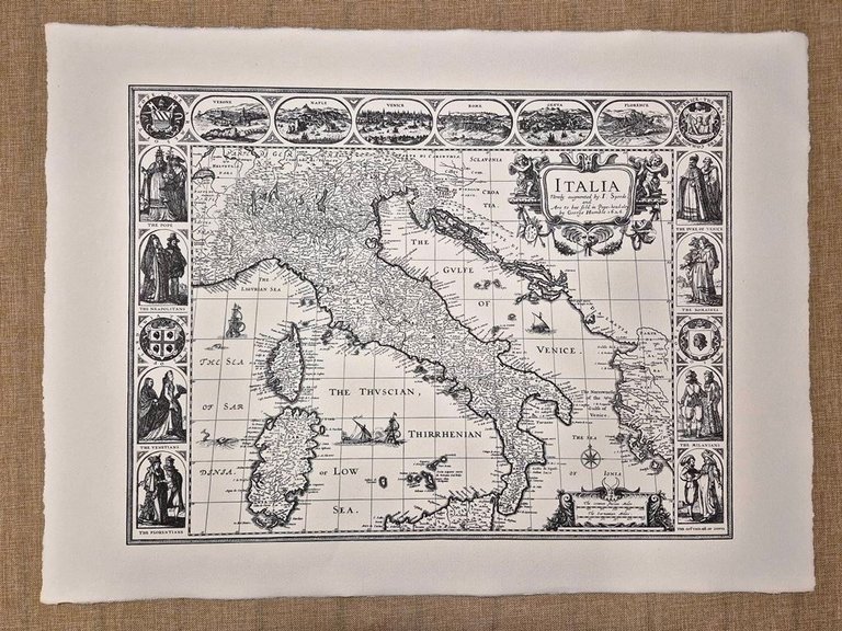 Carta dell’Italia di John Speed con vedute e costumi Anno 1626 Ristampa 65 x 48