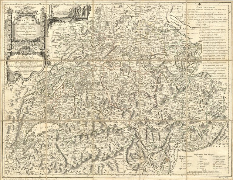 Carte de la Suisse où sont les treize cantons leurs alliés et leurs sujets