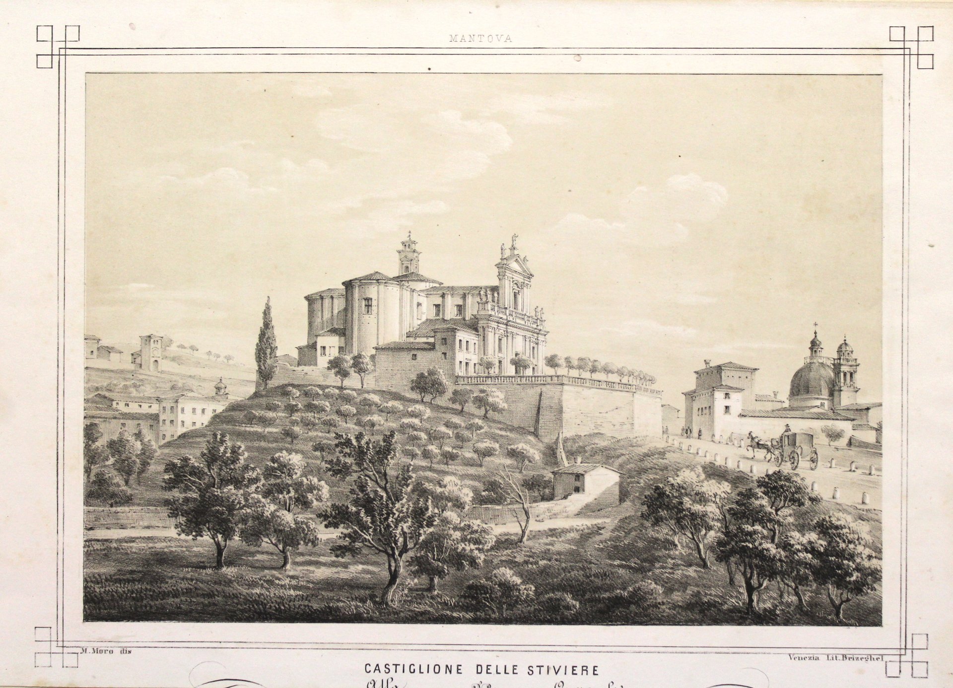 Litografia, mm 184x264 (immagine), eseguita su disegno di Moro dall’editore litografo Brizeghel. Tratta dall’opera “Mantova e la sua provincia” composta da 24 tavole rappresentanti gli scorci più caratteristici e rappresentativi della città e dintorni. Esemplare con margine parzialmente rifilato, in basso con asportazione del testo di dedica.