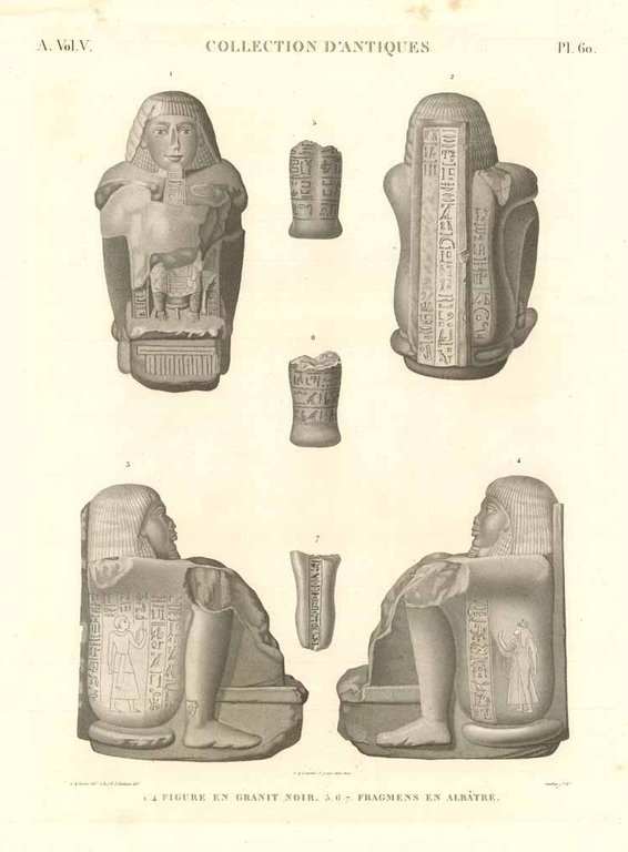 Collection d'antiques - Figure en granit noir - Fragmens en albatre