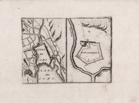 Carta tratta dal rarissimo ' Teatro della Guerra diviso in XXXXVIII parti ' di Vincenzo Coronelli, edito a Venezia (sebbene nel frontespizio sia indicato Napoli) tra il 1706 ed il 1709. La raccolta comprende centinaia di vedute, carte geografiche e nautiche di tutte le parti del mondo. Come scrive Ermanno Armao, grande studioso del Coronelli, “non è facile stabilire quanti e quali sono i volumi che compongono la raccolta". Secondo Augusto De Ferrari (cfr. Dizionario Biografico degli Italiani - Volume 29, 1983): “il ' Teatro della guerra ' era previsto in quarantotto volumi, ma ne uscirono solo ventisette a Venezia tra il 1706 e il 1709, anche se recano diverse indicazioni, ed intendeva essere una descrizione geografica degli Stati coinvolti nella guerra di successione spagnola, con poche pagine di testo e molte tavole (circa duemila), non tutte originali”. ' Alcune carte derivano da quelle già incluse nel testo dell'Isolario ' del 1696, con alcune varianti – spesso nella dedica. La maggior parte delle vedute viene tuttavia realizzata appositamente per l'opera. Acquaforte, in perfetto stato di conservazione. ' Carta molto rara. Carta tratta dal rarissimo ' Teatro della Guerra diviso in XXXXVIII parti ' di Vincenzo Coronelli, edito a Venezia (sebbene nel frontespizio sia indicato Napoli) tra il 1706 ed il 1709. La raccolta comprende centinaia di vedute, carte geografiche e nautiche di tutte le parti del mondo. Come scrive Ermanno Armao, grande studioso del Coronelli, “non è facile stabilire quanti e quali sono i volumi che compongono la raccolta". Secondo Augusto De Ferrari (cfr. Dizionario Biografico degli Italiani - Volume 29, 1983): “il ' Teatro della guerra ' era previsto in quarantotto volumi, ma ne uscirono solo ventisette a Venezia tra il 1706 e il 1709, anche se recano diverse indicazioni, ed intendeva essere una descrizione geografica degli Stati coinvolti nella guerra di successione spagnola, con poche pagine di testo e molte tavole (circa duemila), non tutte originali”. ' Alcune carte derivano da quelle già incluse nel testo dell'Isolario ' del 1696, con alcune varianti – spesso nella dedica. La maggior parte delle vedute viene tuttavia realizzata appositamente per l'opera. Acquaforte, in perfetto stato di conservazione. ' Carta molto rara. Cfr.