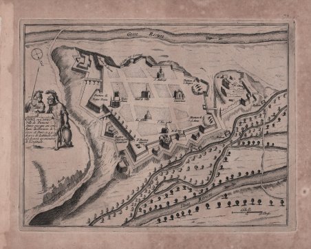 Carta geografica tratta da Les forces de l’Europe ou description des principals villes… Paris: Chez l'Auteur, 1693-1696 celebre raccolta composta da otto parti in un volume, in folio oblungo. Les Forces de l’Europe è un noto atlante militare francese; prevalentemente si tratta di mappe, piani e vedute di fortificazioni di città europee in Francia, Germania e Paesi Bassi, l'atlante include anche una serie di altre regioni, tra cui Malta, Costantinopoli, Tripoli e altrove. Nicolas de Fer (1646-1720) è stato uno dei più grandi cartografi, incisori ed editori del XVII secolo. Il padre, Antoine de Fer, era un modesto mercante di stampe che lavorava sull’Ile del la Cité a Parigi; collaborò con Nicolas I Berey, poi con Melchior Tavernier e, quindi, con Jacques Lagnet. Nel 1652 Antoine adotta l’insegna commerciale della “Sphére royale”, già appartenuta a Tavernier; nel 1657 stampa ' Cartes de géographie, una piccola raccolta tascabile di Pierre Duval. Nel 1667 si firmava “merchand de cartes Gèographique”; proseguì l’attività fino al 1686, quando lasciò la tipografia nelle mani del figlio Nicolas, che aveva fatto da apprendista all’incisore parigino Louis Spirinx e aveva già realizzato la sua prima mappa del Canal du Midi, all’età di soli 23 anni. Nel 1689 realizzò una mappa della Franche-Comté per onorare il Grand Dauphine - Luigi di Francia (1661-1711), primogenito ed erede del re Luigi XIV di Francia, impegnato al comando di una campagna di conquistare di nuovi territori sul Reno. In seguito, venne nominato geografo ufficiale del Delfinato e la sua produzione fu strettamente legata agli interessi della corona francese: ad esempio, ' Forces De L’Europe Ou Introduction A La Fortification, pubblicato nel 1695, che mostrava le nuove fortificazioni progettate dall’innovativo ingegnere francese Sébastien de Vauban. Fu il geografo ufficiale anche di Filippo V e Luigi XIV (entrambi i rami francese e spagnolo della Casa di Borbone) e infine, nel 1720, del Papa. De Fer pubblicò l’Atlas curieux où le Monde représenté dans les cartes générales et particulièrs du Ciel et de ' la Terre ' tra il 1700 e il 1705, aggiungendo ogni volta delle nuove tavole geografiche. La sua opera più maestosa rimane l’Atlas Royal, dans l’Isle du Palais sur le Quay de l'Orloge a la Sphere royale ' (1693). Alla sua morte, l’attività fu ereditata da suo genero Guillaume Danet, che si unì poi con Jacques-François Benard. Acquaforte, in buono stato di conservazione. Map from Les forces de l'Europe ou description des principals villes . Paris: Chez l'Auteur, 1693-1696 famous collection consisting of eight parts in one volume, oblong folio. Les Forces de l'Europe is a well-known French military atlas; predominantly maps, plans and views of fortifications of European cities in France, Germany and the Netherlands, the atlas also includes a number of other regions, including Malta, Constantinople, Tripoli and elsewhere. Nicolas de Fer (1646-1720) was one of the greatest cartographers, engravers and publishers of the 17th century. His father, Antoine de Fer, was a modest print merchant working on the Ile del la Cité in Paris; he collaborated with Nicolas I Berey, then with Melchior Tavernier, and then with Jacques Lagnet. In 1652 Antoine adopted the "Sphére royale" trade sign, which had already belonged to Tavernier; in 1657 he printed ' Cartes de géographie, a small pocket collection by Pierre Duval. In 1667 he signed himself "merchand de cartes Gèographique"; he continued the business until 1686, when he left the print shop in the hands of his son Nicolas, who had been apprenticed to Parisian engraver Louis Spirinx and had already made his first map of the Canal du Midi, at the age of only 23. In 1689 he made a map of Franche-Comté to honor the Grand Dauphine - Louis of France (1661-1711), eldest son and heir of King Louis XIV of France, who was engaged in commanding a campaign to conquer new territories on the Rhine. He was later appointed official geographer of the Dauphiné, and his output was closely linked to the interests of the French crown: for example, ' Forces De L'Europe Ou Introduction A La Fortification, published in 1695, which showed the new fortifications designed by the innovative French engineer Sébastien de Vauban. He was also the official geographer of Philip V and Louis XIV (both the French and Spanish branches of the House of Bourbon) and finally, in 1720, of the Pope. De Fer published theAtlas curieux où le Monde représenté dans les cartes générales et particulièrs du Ciel et de la Terre ' between 1700 and 1705, adding new geographical plates each time. His most majestic work remains the ' Atlas Royal, dans l'Isle du Palais sur le Quay de l'Orloge a la Sphere royale ' (1693). Upon his death, the business was inherited by his son-in-law Guillaume Danet, who later joined forces with Jacques-François Benard. Etching, very good condition. Cfr.