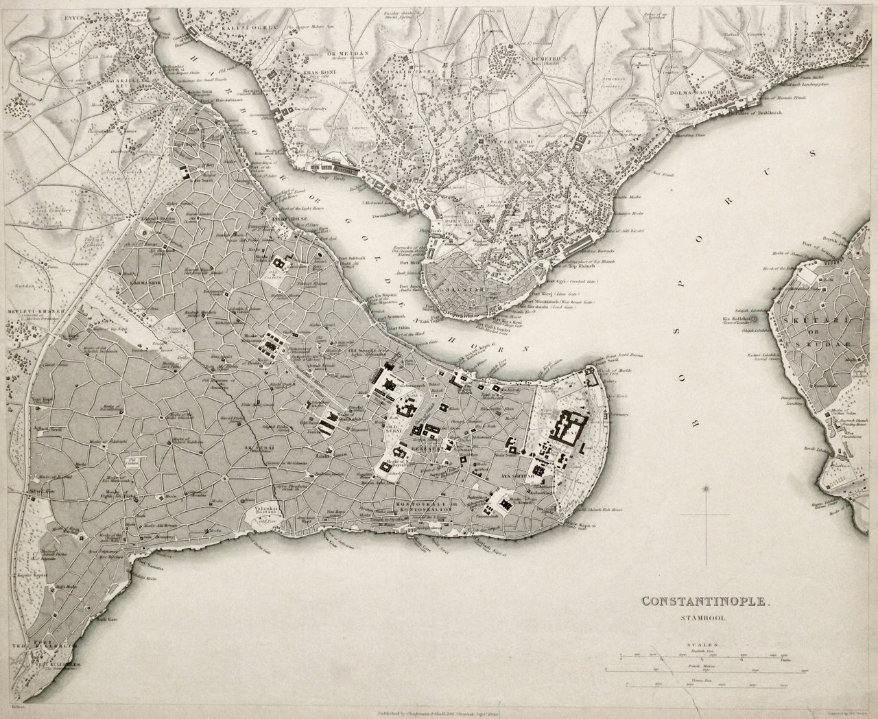 Incisione in rame, eseguita da Davies, mm 320x395, leggermente colorata d'epoca. Pianta della città storica. Discreto esemplare con uno strappo restaurato.