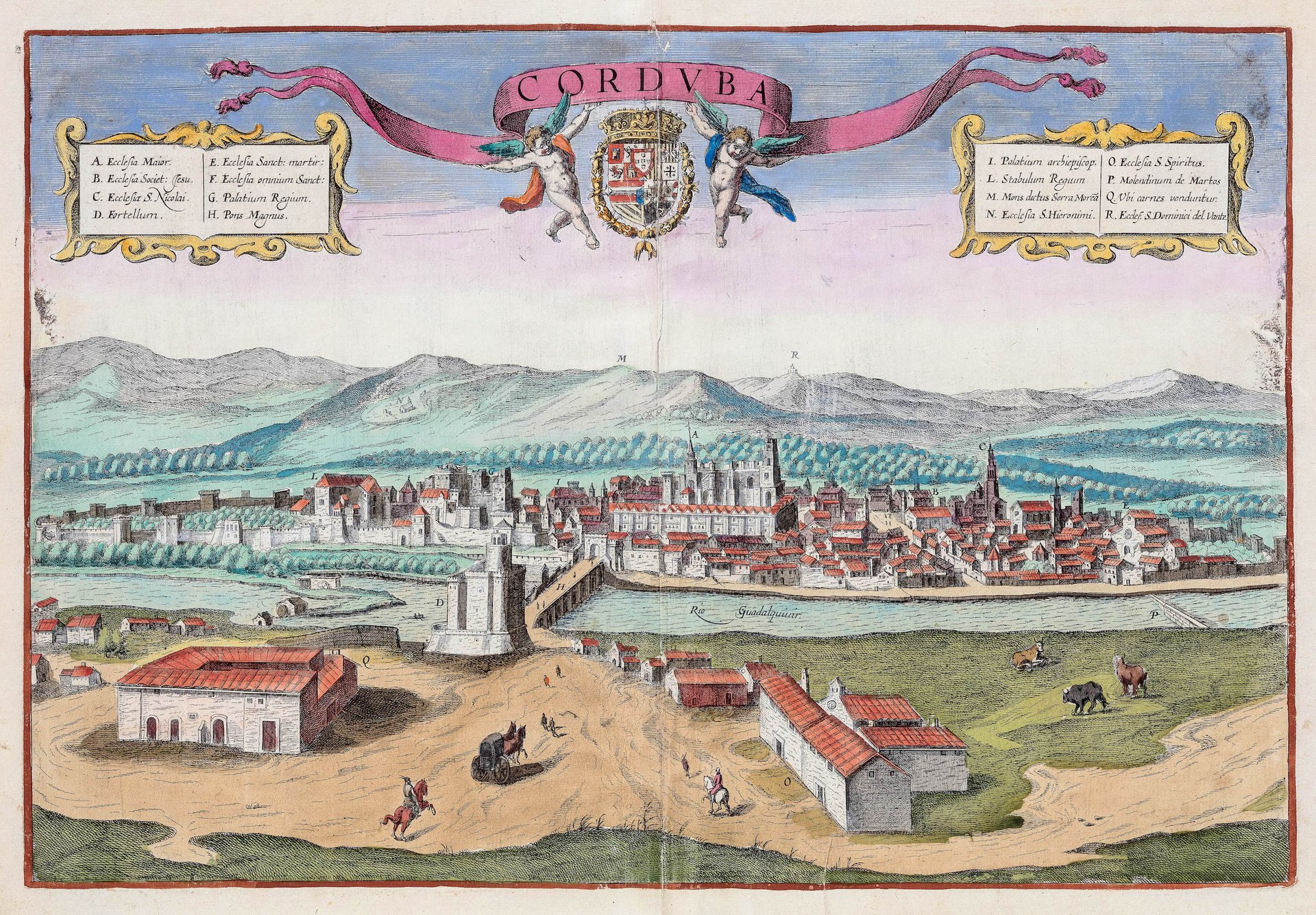Incisione in rame, mm 340x500, testo latino al verso. Splendida veduta che evidenzia i principali edifici e le fortificazioni della città. I punti di riferimento più importanti, come la cattedrale, sono rappresentati con grande evidenza. La mappa è arricchita da un cartiglio decorativo con due legende ai lati.<BR>Tratta da "Civitates Orbis Terrarum", pietra miliare del vedutismo, stampata dal 1572 al 1617 in 6 volumi pubblicati in anni differenti in varie lingue, compilata e scritta da Georg Braun, mentre Frans Hogenberg fu autore delle incisioni insieme a Simon Novellanus, generalmente da soggetti di Hoefnagel. <BR><BR>