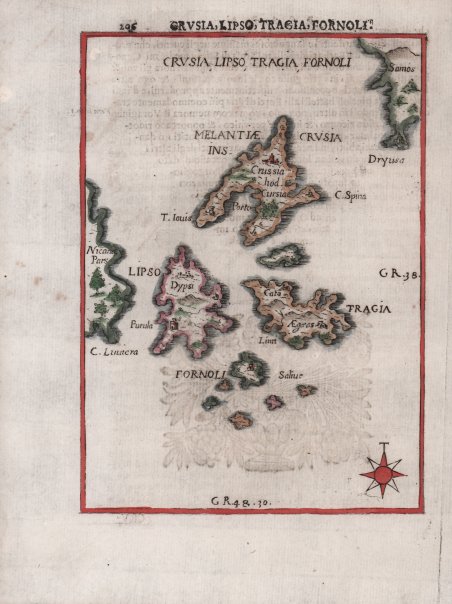 Rara carta dell’isola di Francesco Piacenza, pubblicata in ' L’Egeo Redivivo o’sia Chrorographia dell’Arcipelago, e dello stato primiero, & attuale di quell’isole, regni, citta?, populationi, dominii, costumi, sito & imprese, con la breve descrittione particolare si? del suo ambito littorale, che della Grecia, Morea, o’Peloponnese, di Candia, e Cipri, stampato a Modena nel 1688. L’opera, una sorta di “Isolario” come da tradizione veneziana del XVI secolo, include una descrizione molto approfondita e sistematica delle isole dell'Egeo, di Creta, Cipro e del Peloponneso. Le descrizioni di ogni isola sono molto dettagliate riguardo al terreno, alla posizione di città e villaggi, chiese e monasteri. Menzionano la presenza di antiche rovine e forniscono informazioni sulla storia medievale. Le isole meno conosciute sono particolarmente ben trattate. “Piacenza's work on the Archipelago was inspired by the Venetian successes in the Morea against the Turks from 1684-1688. He describes each island, and according to his own testimony claims to have visited all the islands he describes. He also claims to have drawn all the maps himself. Certainly the book is full of useful information on the nature of each island and its antiquities, and Piacenza gives the sources for his information, both ancient and contemporary. Following the titles of certain maps, we have added place names, separated by a slash, which occur on the maps themselves so that additional islands can be located. For the most part Piacenza uses a double system of place-names for his maps: he uses the modern name of the island in the title at the upper edge of the plate, but he uses the ancient place names on the map itself. The maps are all in the letterpress except for four: Morea, Candia, Arcipelago and Cipro” (cfr. G. Tolias, ' Mapping Greece, 1420-1800: A History Maps in the Margarita Samourkas Collection, p. 508). Francesco Piacenza Napolitano, [nato a Napoli nel 1637 e morto a Modena nel 1687], fu dottore in diritto civile e canonico e professore di geografia; fu anche segretario dell'ambasciatore di Sua Maestà Cattolica in Germania per 8 anni, poi a Bologna come segretario del vescovo cardinale Guzman. Divenne membro dell'"Accademia degli Immobili Dissonanti" e frequentò la neonata Università di Modena dove seguì il corso di Scienze Naturali che comprendeva, per la prima volta, lo studio della chimica. Fu incaricato dal duca di Modena Francesco II de Este di recarsi nell'Egeo e di farne una descrizione e una mappa; purtroppo morì prima della pubblicazione de L'Egeo redivivo ' nel 1688. Acquaforte, impressa su carta vergata coeva e finemente colorata a mano, con margini, testo descrittivo al verso, in ottimo stato di conservazione. Bibliografia C. Zacharakis, ' A Catalogue of Printed Maps of Greece 1477-1800, pp. 236-241, nn. 2628-2690; G. Tolias, ' Mapping Greece, 1420-1800: A History Maps in the Margarita Samourkas Collection, pp. 508-509, nn. 1118-1179. Rare map of the island by Francesco Piacenza, published in the ' L’Egeo Redivivo o’sia Chrorographia dell’Arcipelago, e dello stato primiero, & attuale di quell’isole, regni, citta?, populationi, dominii, costumi, sito & imprese, con la breve descrittione particolare si? del suo ambito littorale, che della Grecia, Morea, o’Peloponnese, di Candia, e Cipri, printed in Modena by Soliani Heirs, 1688. The work, a kind of "Isolario" in the 16th century Venetian tradition, includes a very thorough and systematic description of the islands of the Aegean, Crete, Cyprus and the Peloponnese. The descriptions of each island are very detailed regarding the terrain, location of towns and villages, churches and monasteries. They mention the presence of ancient ruins and provide information about medieval history. Lesser-known islands are particularly well treated. “Piacenza's work on the Archipelago was inspired by the Venetian successes in the Morea against the Turks from 1684-1688. He describes each island, and according to his own testimony claims to have visited all the islands he describes. He also claims to have drawn all the maps himself. Certainly the book is full of useful information on the nature of each island and its antiquities, and Piacenza gives the sources for his information, both ancient and contemporary. Following the titles of certain maps, we have added place names, separated by a slash, which occur on the maps themselves so that additional islands can be located. For the most part Piacenza uses a double system of place-names for his maps: he uses the modern name of the island in the title at the upper edge of the plate, but he uses the ancient place names on the map itself. The maps are all in the letterpress except for four: Morea, Candia, Arcipelago and Cipro” (cfr. G. Tolias, ' Mapping Greece, 1420-1800: A History Maps in the Margarita Samourkas Collection, p. 508). Francesco Piacenza Napolitano, [born in Naples in 1637 and died in Modena in 1687], was a doctor of civil and canon law and professor of geography; he was also secretary to His Catholic Majesty's ambassador to Germany for 8 years, then to Bologna as secretary to Bishop Cardinal Guzman. He became a member of the "Accademia degli Immobili Dissonanti" and attended the newly founded University of Modena where he took the Natural Sciences course that included, for the first time, the study of chemistry. He was commissioned by the Duke of Modena Francesco II de Este to travel to the Aegean and make a description and map of it; unfortunately, he died before the publication of "L'Egeo redivivo" in 1688. Etching, printed on contemporary laid paper and finely hand coloured, with margins, in good condition. ' Bibliografia C. Zacharakis, ' A Catalogue of Printed Maps of Greece 1477-1800, pp. 236-241, nn. 2628-2690; G. Tolias, ' Mapping Greece, 1420-1800: A History Maps in the Margarita Samourkas Collection, pp. 508-509, nn. 1118-1179. Cfr.