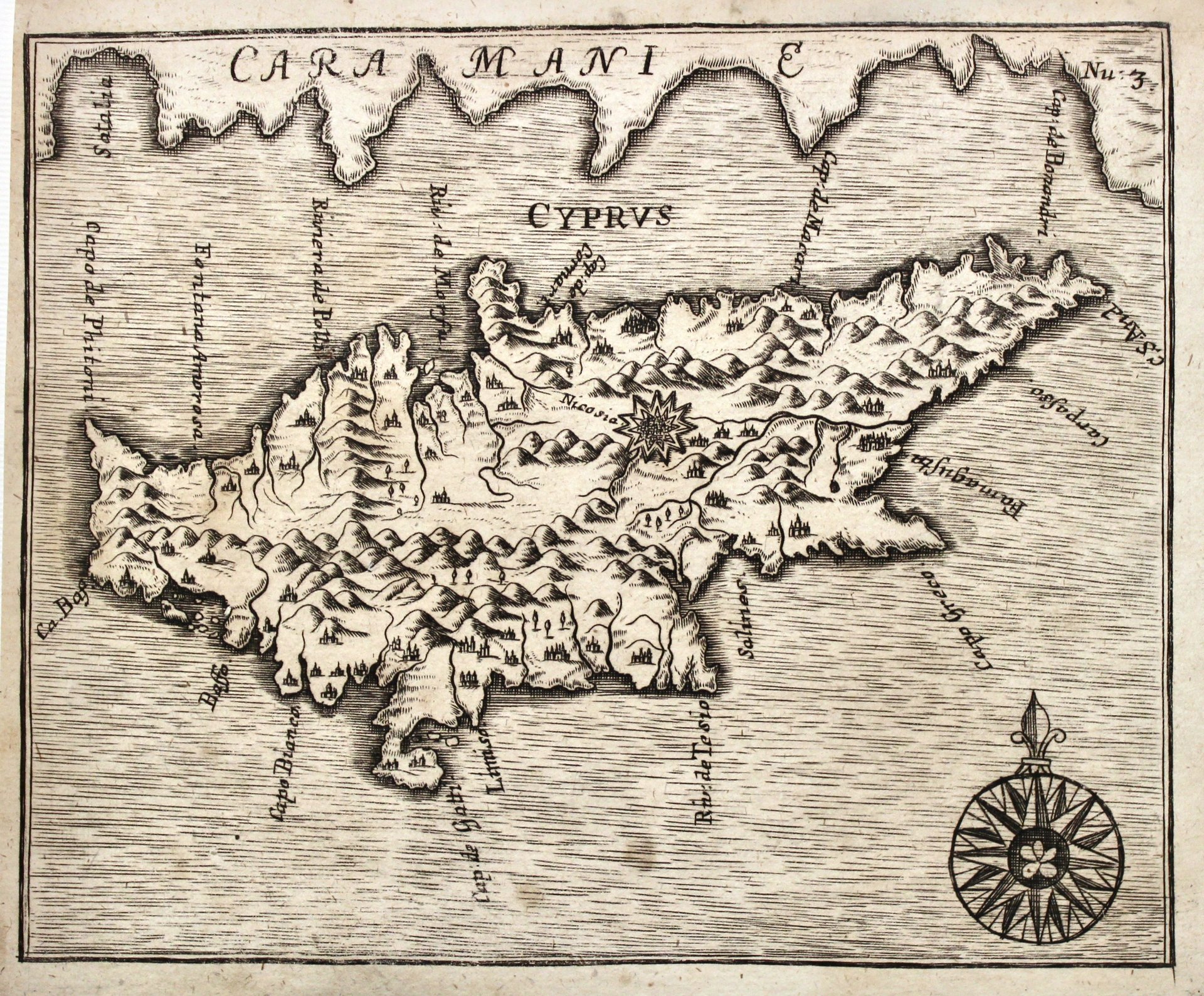 Incisione in rame, mm 180x140. Non comune carta geografica tratta da "Peregrinus in Jerusalem". Buone condizioni, consueti brevi margini<BR><BR>