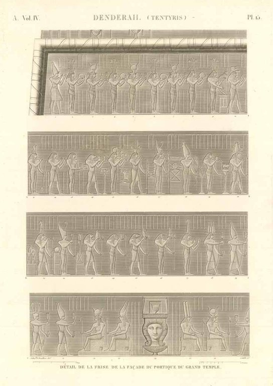 Denderah. (Tentyris) - Detail de la frise de la facade du portique du grand temple
