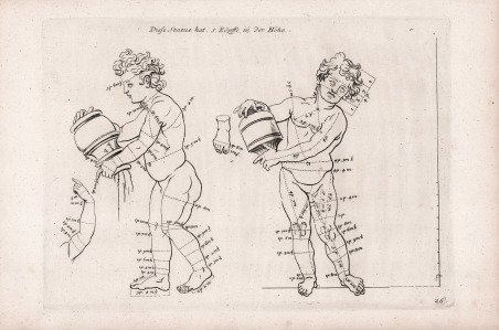 Opera tratta dalla celebre ' Academia Todesca della Architectura, Scultura & Pittura: oder Teutsche Academie der Edlen Bau, Bild-und Mahlerey-Künste, raccolta monumentale, riccamente illustrata da centinaia di incisioni raffiguranti antichità, architettura e mitologia classica, edita a Norimberga e Francoforte tra il 1675 ed il 1680. ' Per le incisioni, il Sandrart si avvalse dei suoi collaboratori Karl Gustav von Amling (1650-1703); Philip Kilian (1628-1693); Richard Collin (1627-97); Georg Andreas Wolfgang (1631-1716); Johann Georg Waldreich (d.1680); Melchior Küsel (1626-1683); Franck, Johann (fl.1659-1690); George Christoph Eimmart (1638-1705); Susanna Maria von Sandrart (1658-1716); Bartholomäus Kilian (1630-1696). L'opera è piena di illustrazioni di edifici romani antichi e moderni, scultura, teoria della pittura, biografie di artisti, tra cui artisti tedeschi e contemporanei (cioè del XVII secolo), e antichità. Joachim von Sandrart fu un pittore di una certa importanza, ma è per la sua ' Teutsche Academie ' che è principalmente ricordato. Il suo compendioso trattato include sezioni sulla scultura antica e l'architettura, la prospettiva, la teoria della pittura, biografie di artisti, una traduzione delle Metamorfosi di Ovidio e così via. La seconda parte del Libro I pretende di dare una storia dell'arte dalle sue prime origini, e si apre con un'incisione di due scene di racconti leggendari della scoperta del disegno. L'opera è dedicata alla nazione tedesca di fama mondiale e ai campioni e amanti dell'arte ('Der Welt-berühmten Teutschen Nation . Kunst-Helden und Kunstliebenden'). Acquaforte, con margini, ottimo stato di conservazione. Bibliografia National Gallery (Washington), ' Mark J. Millard, III (1998), no. 111; F.W. H. Hollstein, ' German engravings . ca. 1400-1700 ' (1954-), 38-41; Anna Schreurs, ' Unter Minerva schutz: bildung durch kunst in Joachim von Sandrarts 'Teutscher Academie' ' (2012). Plate taken fom the monumental ' Academia Todesca della Architectura, Scultura & Pittura: oder Teutsche Academie der Edlen Bau, Bild-und Mahlerey-Künste ' (Deutsche Academy of Architecture - Sculpture – Painting). ' The first edition, in German, was published by Joachim von Sandrart in Nuremberg, in three volumes respectively in 1675, 1679 and 1680.For the plates Sandrart used his students as and many others artist as ' Karl Gustav von Amling (1650-1703); Philip Kilian (1628-1693); Richard Collin (1627-97); Georg Andreas Wolfgang (1631-1716); Johann Georg Waldreich (d.1680); Melchior Küsel (1626-1683); Franck, Johann (fl.1659-1690); George Christoph Eimmart (1638-1705); Susanna Maria von Sandrart (1658-1716); Bartholomäus Kilian (1630-1696). The work is full of illustrations of ancient and modern Roman buildings, sculpture, the theory of painting, biographies of artists, including German and contemporary (ie seventeenth-century) artists, and antiquities. Joachim von Sandrart was a painter of some note but it is for his ' Teutsche Academie ' that he is chiefly remembered. His compendious treatise includes sections on ancient sculpture and architecture, perspective, the theory of painting, artists’ biographies, a translation of Ovid’s Metamorphoses and so on. The second part of Book I purports to give a history of art from its earliest origins, and opens with an engraving of two scenes of legendary accounts of the discovery of drawing. ' The frontispiece to Volume I is signed as drawn by J. de Sandrart and engraved by C.G. Amling; that of Volume II is signed as drawn by Sandrart and engraved by R. Collin. The portrait in Volume I is signed as painted by J.U. Mair and engraved by P. Kilian; that in Volume II is signed as engraved by R. Collin. Many plates are signed as drawn by Sandrart and engraved by R. Collin or other engravers (J. Franck, G.A. Wolfgang, J.G. Waldreich, I.I. Thourneyser, Melchior Küsell, G. C. Eimmart, B. Kilian, Jacob Sandrart, Joh. Meyer, Susanna von Sandrart, J.A. Boener, C. Meyer). Many plates are unsigned.The work is dedicated to the world-renowned German nation and to champions and lovers of art ('Der Welt-berühmten Teutschen Nation . Kunst-Helden und Kunstliebenden'). Etching with margins, very good condition. References National Gallery (Washington), ' Mark J. Millard, III (1998), no. 111; F.W. H. Hollstein, ' German engravings . ca. 1400-1700 ' (1954-), 38-41; Anna Schreurs, ' Unter Minerva schutz: bildung durch kunst in Joachim von Sandrarts 'Teutscher Academie' ' (2012). Cfr.