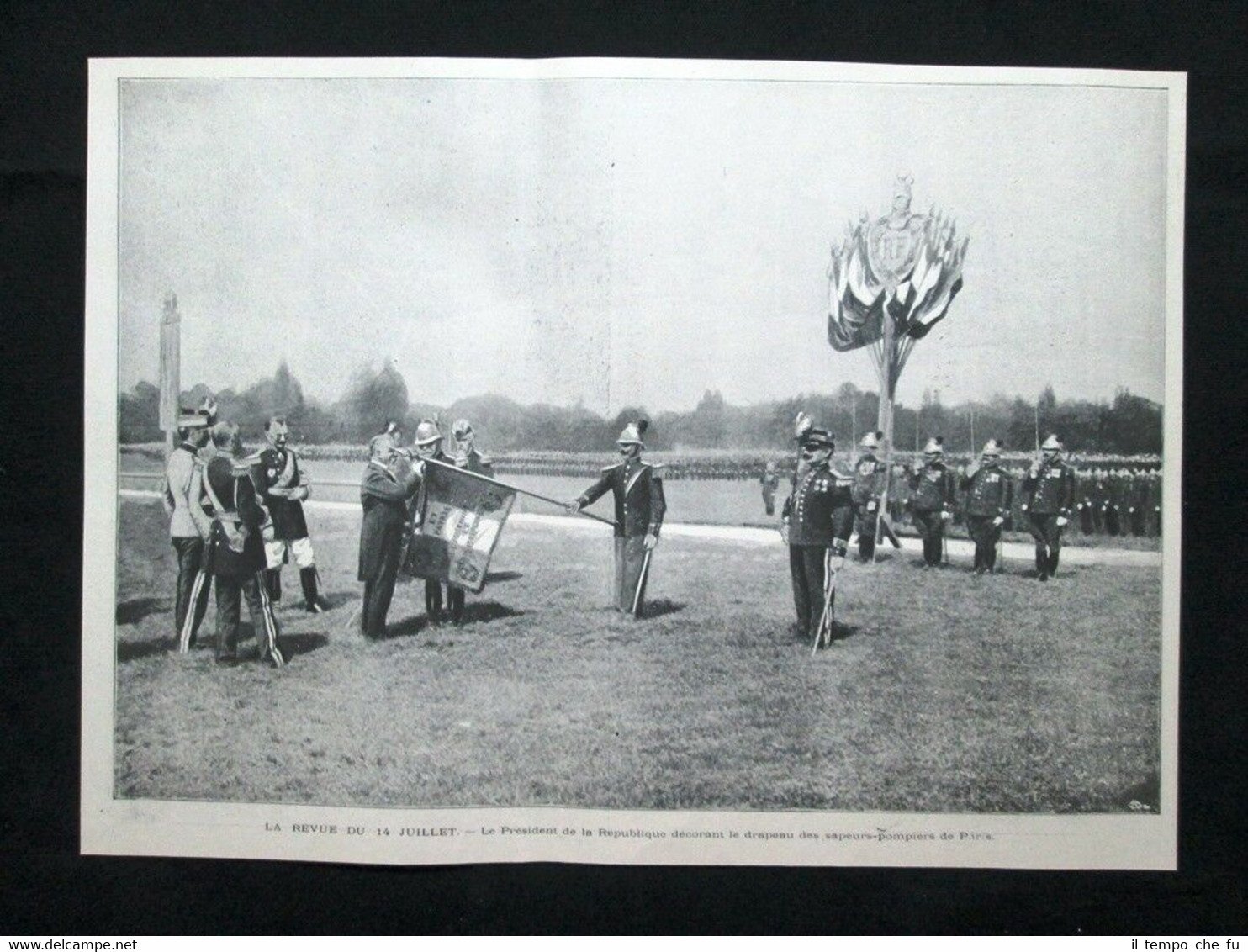 Emile Loubet rende omaggio alla bandiera dei pompieri di Parigi Stampa del 1902