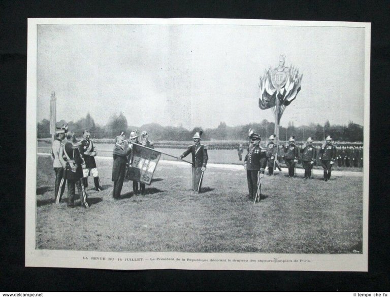Rara stampa estratta da pubblicazione del 1902. .stampa che ha quindi oltre 116 anni! La rivista del 14 luglio 1902 Il Presidente della Repubblica di Francia Emile Loubet rende omaggio alla bandiera dei pompieri di Parigi Dimensioni Cm 34,00 x 24,00 Illustration 1902 - 13 Qualora vogliate delle scansioni migliori contattateci, soddisferemo ogni vostra richiesta. Paypal Carta di credito Bonifico bancario Accuratamente adagiate su un cartoncino e protette da pellicola trasparente rigida, il tutto viene inserito dentro plico di adeguate dimensioni per proteggerne l'integrità.