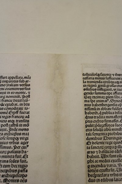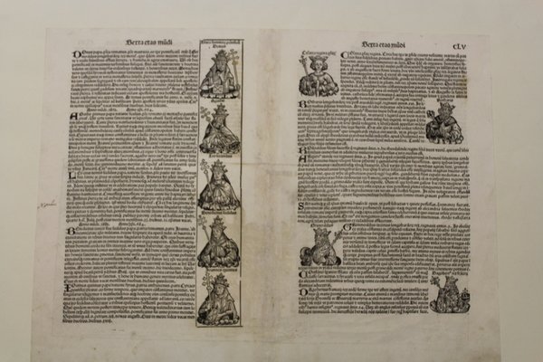 Woodcut, mm 227x518 (sheet 440x596), verso with latin text and nine little woodcuts including popes and kings. A good example with usual restorations at center.<BR>From "Liber Chronicarum", a milestone of illustrated travel-books and one of the most famous books of the 15th century. The engravings are all by Michael Wohlgemuth, teacher of Albrecht Duerer. his stepson Wilhelm Pleydenwurff and some are attributed to Duerer when he was young.The views from "Liber Chronicarum" or "Nuremberg Chronicle" as it is commonly referred to, are among the earliest realistic obtainable views in the market. <BR>