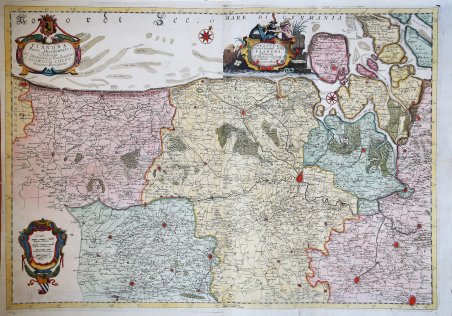 Opera tratta dal ' Corso geografico universale, o sia la terra divisa nelle sue parti e subdistinta ne' suoi gran regni. Esposta in tavole geografiche ricorrette et accresciute di tutte le nuove scoperte, ad uso dell'Accademia Cosmografica degli Argonauti dal Padre Maestro Vincenzo Coronelli M. C. Cosmografo della Serenissima Republica di Venetia. Dedicata alla Santità di Nostro Signore Innocenzo XII. P. I. In Venetia, a spese dell'autore. MDCXCII. Coronelli visse un periodo di straordinaria fecondità editoriale a partire dal 1689, quando ebbe la cattedra di geografia presso l'Università alle Procuratie, con la pubblicazione, nel 1690, del primo volume dell'Atlante Veneto. In effetti sotto il nome di ' Atlante Veneto ' va tutta la raccolta di tredici opere composte nell'arco del decennio successivo, dall'Isolario ' allo ' Specchio del mare. In realtà solo alcune di tali opere possono definirsi atlante, e sono di valore molto disuguale, dato che si passa da opere originali e fondamentali come quelle citate o il ' Corso Geografico ' ad opere di compilazione o semplici raccolte di vedute. Il ' Corso Geografico ' uscì in diverse edizioni con numeri diversi di carte - sessantotto tavole nel 1689-92; di centosettantatré tavole nel 1692; duecentosessanta tavole, nel 1694-97 - che venivano vendute anche separatamente, al ritmo di sei carte al mese per due anni. Le carte furono incise tra il 1688 e il 1692 nell'attrezzatissima officina cartografica del convento dei Frari, dove lavoravano anche incisori stranieri. ' Incisione in rame, finemente colorata a mano, in ottimo stato di conservazione. Detailed map of Fiandre by Vincenzo Coronelli. Coronelli was both a cleric and an encyclopedist, with a particular interest in geography and cartography. In 1681 Coronelli served as Royal Cartographer to King Louis XIV in Paris, gaining special access to the most current records on world geography sent in from the colonies, and provided by the French Academy of Sciences. Coronelli returned to Venice in 1684 and founded the Accademia Cosmografica degli Argonauti, a geographical society with membership drawn from the aristocracy and church hierarchy, and a year later he was appointed Cosmographer to the Republic of Venice. He also started a successful publishing career, and was sole author or contributor to over 140 titles and produced several hundred maps, either printed separately or as parts of atlases. By the end of the 17th century, Coronelli was perhaps the most famous map publisher in Europe and received constant requests from his contemporaries for information that would enable them to bring their atlases up to date. The map is taken from ' Corso geografico universale, o sia la terra divisa nelle sue parti e subdistinta ne' suoi gran regni. Esposta in tavole geografiche ricorrette et accresciute di tutte le nuove scoperte, ad uso dell'Accademia Cosmografica degli Argonauti dal Padre Maestro Vincenzo Coronelli M. C. Cosmografo della Serenissima Republica di Venetia. Dedicata alla Santità di Nostro Signore Innocenzo XII. P. I. In Venetia, a spese dell'autore. MDCXCII. Coronelli lived a period of extraordinary editorial fecundity starting from 1689, when he had the chair of geography at the University at the Procuratie, with the publication, in 1690, of the first volume of the ' Atlante Veneto. Under the name of ' Atlante Veneto ' goes the entire collection of thirteen works composed over the next decade, from the ' Isolario ' to the ' Specchio del mare. ' In reality, only some of these works can be defined as atlas, and are of very unequal value, since we go from original and fundamental works such as those mentioned or the ' Corso Geografico ' to works of compilation or simple collections of views. The ' Corso Geografico ' came out in several editions with different numbers of maps - sixty-eight maps in 1689-92; one hundred and seventy-three maps in 1692; two hundred and sixty maps in 1694-97 - which were also sold separately, at the rate of six a month for two years. The maps were alle engraved between 1688 and 1692 in the well-equipped cartographic workshop of the Frari convent, where foreign engravers also worked. ' Cfr.