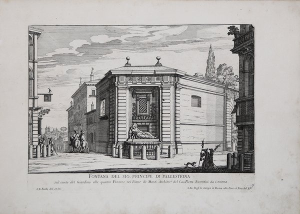Fontana del Sig. Principe di Pallestrina su'l canto del Giardino alle quattro Fontane, nel Rione de Monti Architet.a del Cav