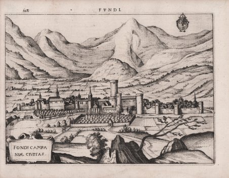 Pianta della città tratta dal celebre "Theatrum urbium Italicarum", raccolta di vedute urbane della penisola pubblicata per la prima volta a Venezia nel 1599. La prima edizione comprendeva cinquantanove tavole con piante e vedute prospettiche adespote, di mano di più incisori, accompagnate da una descrizione latina, che uscirono isolatamente stampate a Venezia (forse nella bottega di Francesco Bertelli), ma con la dedica datata sempre da Padova. Ignoto è l'autore del testo, anche se è stato supposto che ne sia autore lo stesso Bertelli. L'edizione, comunemente considerata seconda, uscì a Vicenza, nel 1616, per i tipi di Domenico Amadio, con titolo italiano di "Teatro delle città d'Italia", con l'aggiunta di alcune tavole (67 anziché 59), ma fu preceduta da una edizione non datata costituita dai rami senza testo. “L’ultima raccolta di cartografia urbana del XVI secolo, venne stampata da Pietro Bertelli (1571 circa - 1621) nel 1599 Pietro era editore, incisore e tipografo, figlio di Ferrando Bertelli, lavoro a Padova, nella ' Libreria all’insegna dell’Angelo, a Venezia e a Vicenza. Come incisore, nel 1589 collaboro ad alcune tavole dell’opera ' Diversarum nationum habitus… ' composta da 106 stampe, edita in collaborazione con Alciato Alciati. Per le ' Vite degli imperatori de’ Turchi con le loro effigie ' intagliate in rame per i tipi di Giorgio Greco, edita a Vicenza nel 1599, Bertelli incise quindici ritratti. Nello stesso anno usci il ' Theatrum Urbium Italicarum, serie di 59 tavole con vedute e piante accompagnate da descrizione latina, eseguite da più incisori, poi ristampata, accresciuta, anche con il titolo italiano ' Teatro delle città d’Italia, per i tipi di Domenico Amadio. Alla sua morte, l’attività prosegui con suo figlio Francesco, anch’egli tipografo, incisore e editore. La sua marca tipografica era un angelo in piedi con le ali spiegate, l’avambraccio destro puntato verso l’alto con l’indice al cielo e un giglio nella mano sinistra. Il ' Teatro delle città d’Italia ' venne più volte ristampato e implementato da Francesco nel corso del secolo successivo” (cfr. S. Bifolco, ' Città e Fortezze Principali del Mondo. Le prime raccolte italiane di cartografia urbana e gli isolari del XVI secolo ' in “Cartografia e topografia italiana del XVI secolo” p. 133). Incisione in rame, in ottimo stato di conservazione. City plan taken from the famous ' Theatrum urbium Italicarum, ' a collection of urban views of the peninsula first published in Venice in 1599. The first edition comprised fifty-nine plates with plans and perspective views by several engravers, accompanied by a Latin description, which were printed separately in Venice (possibly in Francesco Bertelli's workshop), but with the dedication also dated from Padua. The author of the text is unknown, although it has been suggested (Mazzuchelli) that Bertelli himself was the author. This edition, commonly regarded as the second, was published in Vicenza in 1616 for the types of Domenico Amadio, with the Italian title of "Teatro delle città d'Italia", with the addition of some plates (67 instead of 59) but was preceded by an undated edition consisting of the plates without text. “L’ultima raccolta di cartografia urbana del XVI secolo, venne stampata da Pietro Bertelli (1571 circa - 1621) nel 1599 Pietro era editore, incisore e tipografo, figlio di Ferrando Bertelli, lavoro a Padova, nella ' Libreria all’insegna dell’Angelo, a Venezia e a Vicenza. Come incisore, nel 1589 collaboro ad alcune tavole dell’opera ' Diversarum nationum habitus… ' composta da 106 stampe, edita in collaborazione con Alciato Alciati. Per le ' Vite degli imperatori de’ Turchi con le loro effigie ' intagliate in rame per i tipi di Giorgio Greco, edita a Vicenza nel 1599, Bertelli incise quindici ritratti. Nello stesso anno usci il ' Theatrum Urbium Italicarum, serie di 59 tavole con vedute e piante accompagnate da descrizione latina, eseguite da più incisori, poi ristampata, accresciuta, anche con il titolo italiano ' Teatro delle città d’Italia, per i tipi di Domenico Amadio. Alla sua morte, l’attività prosegui con suo figlio Francesco, anch’egli tipografo, incisore e editore. La sua marca tipografica era un angelo in piedi con le ali spiegate, l’avambraccio destro puntato verso l’alto con l’indice al cielo e un giglio nella mano sinistra. Il ' Teatro delle città d’Italia ' venne più volte ristampato e implementato da Francesco nel corso del secolo successivo” (cfr. S. Bifolco, ' Città e Fortezze Principali del Mondo. Le prime raccolte italiane di cartografia urbana e gli isolari del XVI secolo ' in “Cartografia e topografia italiana del XVI secolo” p. 133). Copperplate engraving, in good condition. Cfr.