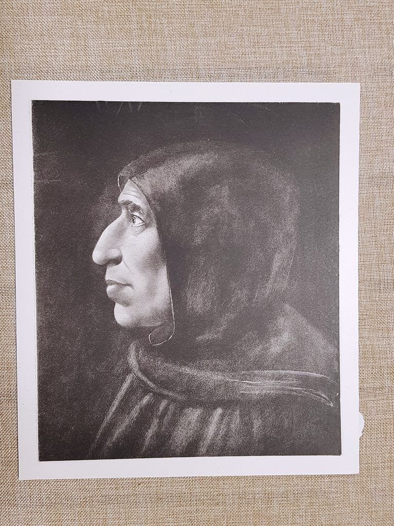 Rara incisione su carta speciale e non retroscritta Estratta da pubblicazione del 1888 Girolamo Savonarola (1452–1498) fu un frate domenicano, predicatore e riformatore politico e religioso, protagonista della vita fiorentina nel tardo Quattrocento. Nato a Ferrara, abbandonò gli studi di medicina e filosofia per entrare nel convento di San Domenico a Bologna nel 1475, spinto da una profonda vocazione spirituale. A partire dal 1490, le sue prediche a Firenze denunciarono con forza la corruzione della Chiesa, il lusso della corte medicea e il degrado morale della società rinascimentale. Dopo la cacciata dei Medici nel 1494, Savonarola divenne guida spirituale e politica della città, instaurando una repubblica ispirata a principi cristiani e morali. Tra le sue iniziative più celebri: • Riforme democratiche e fiscali a favore dei ceti popolari • Roghi delle vanità (1497), in cui furono bruciati oggetti di lusso, libri e opere d’arte • Scontro con Papa Alessandro VI, che lo scomunicò nel 1497 • Processo e condanna per eresia: fu impiccato e bruciato in Piazza della Signoria il 23 maggio 1498 Savonarola fu autore di trattati teologici e morali, tra cui Trattato dell’amore di Gesù Cristo, Prediche, Compendium delle rivelazioni e Trattato sul governo di Firenze. La sua figura influenzò artisti e pensatori come Botticelli, Michelangelo e Machiavelli, che lo definì “profeta disarmato”. Dimensioni: Cm 21,00 x 24,00 Codice prodotto X-024 PayPal Carta di credito Bonifico bancario Inserita dentro plico di adeguate dimensioni per proteggerne l'integrità Spedizione con posta ordinaria o raccomandata scelta dall’Acquirente nel momento del pagamento Clicca qui per accedere al nostro Store ed al suo sterminato archivio