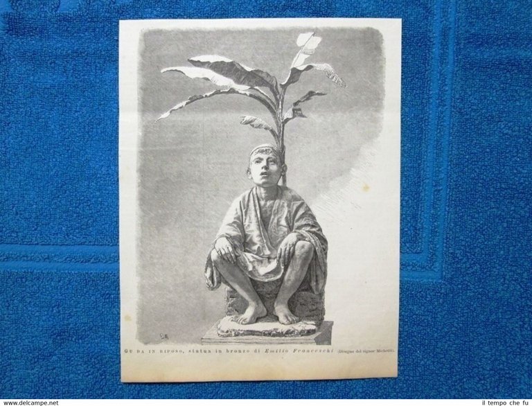 Rara Incisione Estratta da rivista d'epoca del 1877Gu Da in riposo, statua in bronzo di Emilio Franceschi II1877 - 008 Dimensioni Cm 20,00 x 25,00 Qualora vogliate delle scansioni migliori contattateci, soddisferemo ogni vostra richiesta. PaypalCarta di creditoBonifico bancario Accuratamente adagiate su un cartoncino e protette da pellicola trasparente rigida,il tutto viene inserito dentro plico di adeguate dimensioni per proteggerne l'integrità.