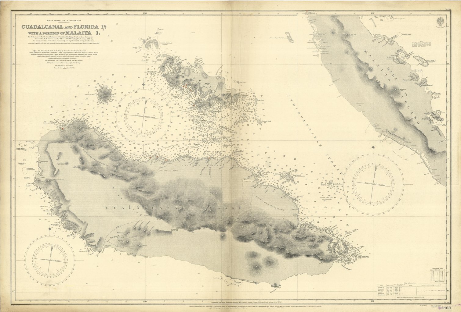 Guadalcanal and Florida I.s with a portion of Malaita I. | Grabados | Admiralty Charts, Admiralty Charts