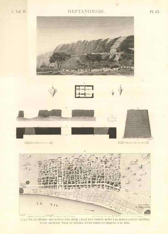 Heptanomide - Vue et détails des ruines d'El Deyr - Plan d'un édifice ruiné à El Deyr - .
