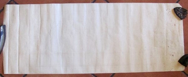 Anonimo , primi '900. Splendida stampa con ori a rilievo, probabilmente per Catechesi. Non datata ma primi '900. Cartoncino arrotolato lievemente ingiallito dal tempo ma integro e fresco. 98x38. Rara e in Buonissimo stato. cm 38 x 98 , Molto buono (Very Good)