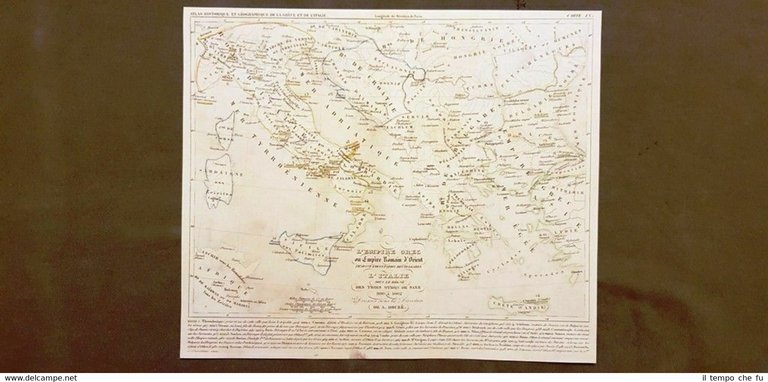 Rara carta geografica o mappa del 1859. Stampata su carta non retroscritta .Stampa che ha quindi oltre 161 anni! L'Impero Greco o Impero romano d'oriente durante l'occupazione della Bulgaria e L'Italia sotto il Regno dei 3 Ottone di Sassonia Dal 900 al 1002 Stampata sotto la direzione di A. Houzé Molto dettagliata, con confini colorati e con ampia didascalia Codice articolo: VIP-036 Dimensioni: Cm 29,00 x 24,00 Estratta dalla pregiata e rara opera "Universite de France - Atlas Universel Historique et Géographique", edita in Parigi nel 1859 da A. Houzé, membro della Società di geografia. Paypal Carta di credito Bonifico bancario Spedizione con posta ordinaria o raccomandata scelta dall'Acquirente nel momento del pagamento Clicca qui per accedere al nostro Store ed al suo sterminato archivio