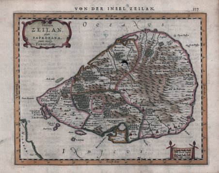 Mappa in miniatura tratta dall’Atlas minor, Das ist: Eine kurtze, jedoch gründliche Beschreibung der gantzen Weldt. ' Incisa da Abraham Goos o Pieter van den Keere, venne pubblicata per la prima volta da Johannes Janssonius nel 1628. L'Atlas Minor ' di Gerard Mercator fu concepito da Jodocus Hondius nel 1607 come edizione ridotta del popolare ' Atlas ' di Mercator in folio. L'Atlas Minor ' doveva essere più grande di un atlante tascabile, ma più piccolo di un atlante in folio, e aveva un prezzo adeguato a raggiungere una diversa clientela. Ci furono tre diverse edizioni dell'Atlas Minor ' pubblicate da autori diversi, ognuna con una nuova serie di mappe incise in rame. Jodocus Hondius pubblicò la prima edizione tra il 1607 e il 1621, e successivamente vendette le tavole in rame ad editori inglesi; tra il 1635-39 fu pubblicata un'edizione inglese dell’opera utilizzando molte delle tavole originali. Johannes Janssonius volle competere anche nel mercato dei “piccoli” atlanti e fece incidere nuove lastre di rame da Pieter van den Keere e Abraham Goos per la propria edizione dell’Atlas Minor, pubblicata in più lingue tra il 1628 e il 1651 La terza e ultima versione fu pubblicata da Jan Evertsz. Cloppenburch (o Cloppenburg) tra il 1630 e il 1734, con nuove mappe incise principalmente sempre da Pieter van den Keere. "Shortly after the publication of the big folio-atlases the need was apparantly felt for a smaller-sized atlas, one that would be handier, and, above all, cheaper, so that a larger public might have access to the use of maps. The publication of the ' Atlas Minor ' appeared to be a great success for Hondius; the first Latin edition was in great demand. The copperplates of the first atlases minor were most almost certainly engraved by Jodocus Hondius himself. After 1621, the copperplates of the ' Atlas Minor ' were sold to a London editor. Firstly, they appeared in ' Purchas his Pilgrinies, printed in 1625 by William Stansby for Henry Featherstone. Next they were used for the translation of the Mercator-atlas, printed in small folio under the title ' Historia mundi, or Mercators atlas, ' by Thomas Cotes for Michael Sparke and Samuel Cartwight in 1635". (cf. Koeman II Me 191). "As with the ' Theatrum ' of Abraham Ortelius, Jodocus Hondius planned a reduced size version of Gerard Mercator's folio atlas. Just one year after his first edition he published his Latin text ' Atlas Minor ' in collaboration with Jan Jansz. and Cormelis Claesz. The arrangement between these three is not understood clearly but Hondius is believed to have been the owner of the copperplates. Cartographically this is taken directly from the folio maps by Hondius in 1606 [.]. with the inevitable loss of detail due to the reduction” (cf. Burden, ' The Mapping of North America, 153). ' Johannes Janssonius (1588-1664) era figlio di un omonimo tipografo, editore e libraio di Arnhem. Nel 1612 sposò Elisabetta Hondius, figlia di Jodocus Hondius I, e nello stesso anno fondò una propria casa editrice ad Amsterdam. Alla morte di Jodocus I, nello stesso anno, iniziò ad aiutare la vedova di Hondius a continuare la pubblicazione dell'atlante di Mercatore e Hondius. Sia la vedova di Hondius, Colette, sia il figlio maggiore di Hondius, Jodocus II, morirono nel 1629; Janssonius unì quindi le forze con il figlio minore di Hondius, Henricus, per una revisione dell'Atlas Novus, a partire dal 1638. Acquaforte, finemente colorata a mano, in ottimo stato di conservazione. Dall’edizione tedesca dell’Atlas Minor, stampata ad Amsterdam nel 1648. Bibliografia Koeman IIIB, 352:33. A miniature map taken from ' Atlas minor, Das ist: Eine kurtze, jedoch gründliche Beschreibung der gantzen Weldt. ' Engraved by Abraham Goos or Pieter van den Keere, first issued by Johannes Janssonius in 1628. Mercator's ' Atlas Minor ' was conceived by Jodocus Hondius in 1607 as a reduced-sized edition of the popular folio-sized Mercator Atlas. The ' Atlas Minor ' was intended to be larger than a pocket atlas, yet smaller than the folio atlas, and were priced accordingly to reach a new market. There were three different editions of the ' Atlas Minor ' published by different authors, each with a new set of copperplates. Jodocus Hondius published the first edition from 1607-1621, and subsequently sold the copperplates to parties in England between 1621-1625, after which an English edition was published using many of the original plates in 1635-39. Johannes Jansson wanted to compete in the small atlas market as well, and had new copperplates engraved by Pieter van den Keere and Abraham Goos for his own edition published in multiple languages between 1628-51. The third and final edition was published by Jan Evertsz. Cloppenburch (or Cloppenburg) between 1630-1734 (some without text), with new maps engraved primarily by Pieter van den Keere. "Shortly after the publication of the big folio-atlases the need was apparantly felt for a smaller-sized atlas, one that would be handier, and, above all, cheaper, so that a larger public might have access to the use of maps. The publication of the ' Atlas Minor ' appeared to be a great success for Hondius; the first Latin edition was in great demand. The copperplates of the first atlases minor were most almost certainly engraved by Jodocus Hondius himself. After 1621, the copperplates of the ' Atlas Minor ' were sold to a London editor. Firstly, they appeared in ' Purchas his Pilgrinies, printed in 1625 by William Stansby for Henry Featherstone. Next they were used for the translation of the Mercator-atlas, printed in small folio under the title ' Historia mundi, or Mercators atlas, ' by Thomas Cotes for Michael Sparke and Samuel Cartwight in 1635". (cf. Koeman II Me 191). "As with the ' Theatrum ' of Abraham Ortelius, Jodocus Hondius planned a reduced size version of Gerard Mercator's folio atlas. Just one year after his first edition he published his Latin text ' Atlas Minor ' in collaboration with Jan