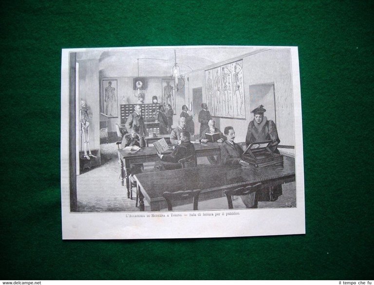 Rara Incisione Estratta da Rivista d'Epoca del 1893 L'accademia di medicina a Torino nel 1893: Sala di lettura per il pubblico Dimensioni 23x18cm II1893-029 Qualora vogliate delle scansioni migliori contattateci, soddisferemo ogni vostra richiesta. Paypal Carta di credito Bonifico bancario Accuratamente adagiate su un cartoncino e protette da pellicola trasparente rigida il tutto viene inserito dentro plico di adeguate dimensioni per proteggerne l'integrità