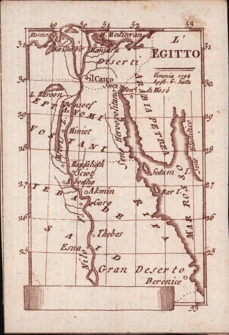 RARITA’ CARTOGRAFICA Sconosciuta piccola carta geografica con imprint di Giacomo Zatta e data 1794, appartenente a un non documentato atlante in miniatura dal titolo “Atlante tascabile per le dame”, suddiviso in tre tomi, stampati “IN VENETIA Presso G. Zatta”, senza data ma circa 1795. Si tratta di carte da visita – con un apposito spazio bianco dove apporre il proprio nome – dove compare l’imprint o di Pietro Zancon (accompagnato dalla data 1794) o di Giacomo Zatta (con data 1794 o 1795), che, come si legge sul frontespizio, risulta l’editore dell’opera. Possiamo ipotizzare che la serie, iniziata da Zancon fu poi terminata dallo Zatta. Sulla carta dell’Italia – presumibilmente la prima tavola dell’opera – compare stampato il nome di Chiara Minelli Rota, nobildonna veneziana che sposò Antonio Rota nel 1794; tutte le restanti 65 carte recano lo spazio bianco privo di nome. In precedenza, le carte erano note solo attraverso una serie, priva di imprint editoriale, venduta 21 anni fa (1999) dall’Antiquariaat Haas di Bedburg Hau; parlando con Stephan Haas, la serie, priva di titolo e dati editoriali si componeva di 70 mappe. Le carte furono vendute separatamente sotto il nome di G. Bonatti, firma dell’incisore che si trova nella carta della Francia. In seguito, le tavole furono attribuite a Pietro Zaricen da Geoffrey King (cfr. Miniature Antique Maps, p. 181). Il nome dello Zaricen viene dedotto dalla carta della contea del Roussillon, che reca l’iscrizione “Venezia 1794 App.o P. Zancon”, letto erroneamente come Zaricen. Lajos Szantai include la carta dell’Ungheria nella sua cartobibliografia, traducendo il nome dell’autore in Zancen (cfr. Atlas Hungaricus 1528-1850). Sempre King, che non menziona nessuna carta firmata da Zatta, sostiene che “About the turn of the century a signed card of the first edition, with a map of the province of Roussillon in the south of France, was seen at an Ephemera Society Fair in London”. Questo esemplare sembrerebbe oggi quello conservato alla Yale University Library [1978 351], che lo descrive composto da 70 carte geografiche. Non sappiamo se sia il numero totale delle mappe, e l’assenza di un indice o dell’elenco non consente di stabilire l’esatto numero delle carte che lo compongono. http://hdl.handle.net/10079/bibid/3611852Confrontando le carte erroneamente attribuite allo Zaricen ci si accorge che la lastra è abrasa in corrispondenza della firma di Zancon o Zatta. Molto scarse sono le notizie sulle carte che possiamo ora definire “ex Zaricen”. Jason Hubbard nella sua bibliografia recente sulle carte del Giappone raffigura la carta priva dell’imprint “App.o G. Zatta” attribuendola - sulla base delle informazioni bibliografiche finora note – a Giuseppe Bonatti e Pietro Zaricen: “This is one of the 70-odd geographical cards, printed on one side only, acquired by the Haas brothers in 1999. The cards cover countries around the world and include detailed map of Italian provinces. The card with the map of France carries the inscription: G. Bonatti fece; and it is presumed that Bonatti engraved all of them although this is questioned by King” (cfr. J. Hubbard, Japoniae Insulae, n. 124). Il nostro esemplare della carta della Francia, che reca l’imprint “Venezia 1794, App.o P. Zancon” reca in basso a destra la firma di Bonatti sopra menzionata. Dunque, l’unica differenza tra questa serie di sconosciute carte sembra essere la presenza degli imprint editoriali di Zancon e Zatta, accompagnati dalla data 1794 o 1795. Giuseppe Bonatti è menzionato da V. Valerio nella qualità di incisore cresciuto alla scuola Remondini di Bassano, autore di alcune carte per l’atlante di Pazzini Carli (Siena, 1788-1800) e per l’Atlante Geografico di Carlo Antonio Barbiellini (Milano, 1807). Dal 1809 in poi lavorò come incisore per il Deposito della Guerra di Milano (cfr. V. Valerio, Cartografi Veneti, p. 153). Pietro Zancon era, assieme . A GREAT RARITY Unknown small map with imprint by Giacomo Zatta and date 1794, belonging to an undocumented miniature atlas entitled “Atlante tascabile per le dame” (Pocket Atlas for ladies), divided into three volumes, printed "IN VENETIA Presso G. Zatta", undated but about 1795. A rare set of visiting cards published in Italy features pretty little maps of all parts of the world - with a special white space where to put your name - where the imprint appears or of Pietro Zancon (accompanied by the date 1794) or Giacomo Zatta (with the date 1794 or 1795), who, as can be read on the title page, is the publisher of the whole Atlas. We can speculate that the series, started by Zancon was later terminated by Zatta. On the map of Italy is printed - presumably the first map of the work - the name of Chiara Minelli Rota, Venetian noblewoman who married Antonio Rota in 1794; all remaining 65 maps bear the blank space without names. Previously, the maps were known only through a series, without editorial imprint, sold 21 years ago (1999) by the Antiquariaat Haas of Bedburg Hau; speaking with Stephan Haas, the series, without title and printing details, consisted of 70 maps. The maps were sold separately under the name of G. Bonatti, the engraver's signature found on the map of France. Later, the plates were attributed to Pietro Zaricen by Geoffrey King (see Miniature Antique Maps, p. 181). The name of Zaricen is derived from the Roussillon county map, which bears the inscription "Venice 1794 App.o P. Zancon", incorrectly read as Zaricen. Lajos Szantai includes the map of Hungary in his cartobibliography, translating the author's name into Zancen (see Atlas Hungaricus 1528-1850). Always King, who does not mention any map signed by Zatta, said: "About the turn of the century a signed card of the first edition, with a map of the province of Roussillon in the south of France, was seen at an Ephemera Society Fair in London ". This copy would seem to be the one preserved in the Yale 