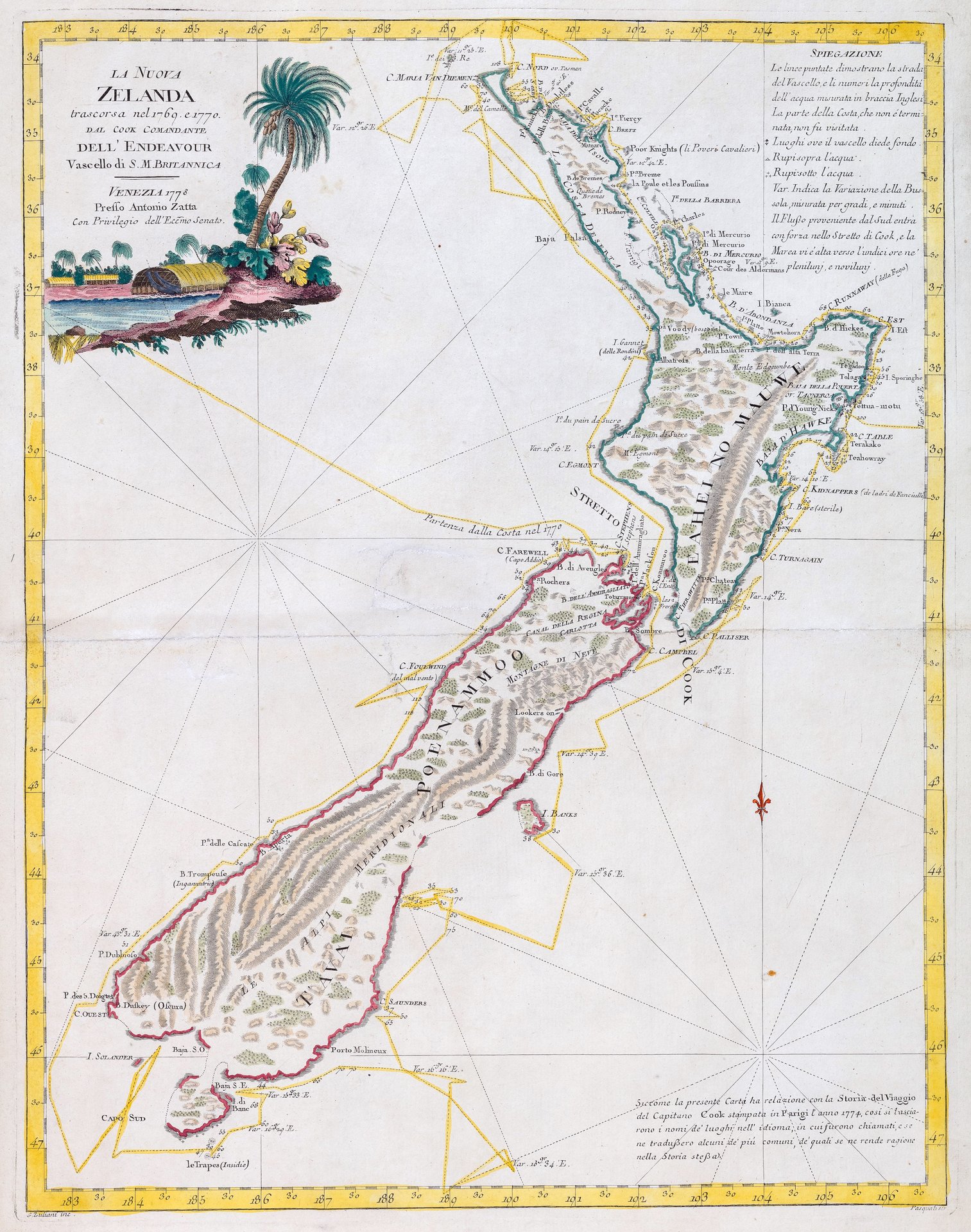 La Nuova Zelanda trascorsa nel 1769. e 1770 dal Cook comandante dell' Endeavour vascello di S. M. Britannica