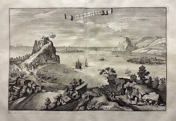 Incisione originale su rame (cm. 51x34 più ampi margini bianchi) tratta dalla monumentale opera ‘Nouveau Theatre de l’Italie’, riedizione del ‘Theatrum Civitatum’ pubblicato da Joan Blaeu nel 1663. Esemplare in nitida impressione ed eccellente stato di conservazione. Nel 1672 la tipografia di Blaeu fu distrutta da un incendio e l’editore Mortier rilevò ciò che restava delle lastre di rame (alcune delle quali ancora inedite), aggiunse nuove tavole e ritoccò - seppur con piccole modifiche - buona parte delle vedute originarie.