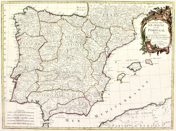 Incisione in rame, colorata d'epoca ai confini, mm 490x615. Bel cartiglio figurato in basso a sinista ed in alto riquadro di mm 240x240 raffigurante "Carte de la Terre de Canaan ou Terre Promise à Abraham.", molto dettagliata. Edizione veneziana della carta di Janvier, tratta da "Atlas Universel" stampato a Venezia fra il 1776 ed il 1784. Bell'esemplare, un lievissimo alone, ottimo stato di conservazione.