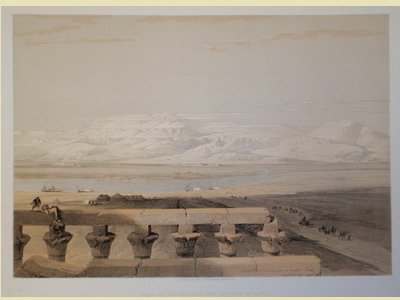 Litografia colorata di mm 350x500 su foglio di 450x605.<BR>Tratta da Egypt & Nubia, considerata assieme a The Holy Land (sempre dello stesso autore) la più grande opera illustrata in litografia di tutto il XIX secolo. Dopo aver compiuto studi d'arte e aver lavorato come pittore di scene teatrali in Glasgow e Londra, David Roberts (1796-1864) compì un lunghissimo viaggio che lo portò a visitare buona parte dell'Europa, del Medio Oriente e del Nord Africa, località affascinanti ed esotiche che lo colpirono particolarmente e che egli provvide a ritrarre in numerosi acquerelli. Tornato in Inghilterra, riuscì a pubblicare i dipinti presso l'editore Moon di Londra il quale, oltre a pagarlo profumatamente per la concessione dei diritti, lo assunse come supervisore all'opera di Louis Haghe, che doveva riprodurre gli originali in litografia. Questo è il giudizio che Roberts espresse sull'opera di Haghe: "Haghe has not only surpassed himself, but all that has hitherto been done of a similar nature. He has rendered the views in a style clear, simple and unlaboured, with a masterly vigour and boldness which none but a painter like him could have transferred to stone". La pubblicazione dell'opera ebbe un immediato e grandissimo successo, che contribuì non poco a collocare Roberts tra i più grandi pittori di paesaggi e di architetture.<BR>Abbey Travel I, 272: "One of the most important and elaborate ventures of nineteenth-century publishing, and.the apotheosis of the tinted lithograph".<BR>Bell'esemplare, con leggere e sporadiche fioriture marginali.