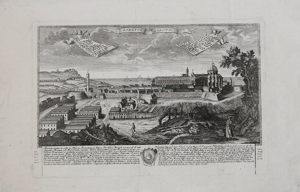 Bella e rara veduta panoramica della città delineata sulla scia della più grandi vedute disegnate da Fredrich Bernhard Werner e pubblicata ad Augsburg dagli eredi dell’editore Jeremias Wolff (1663-1724), Georg Balthasar Probst (1673-1750) – suo genero – e il suo successore, il figlio Johann Friedrich (1719-1781). Werner, nato a Reichenau, fu disegnatore, incisore, ingegnere e scenografo; durante la sua intensa vita viaggiò a lungo in vari stati europei prima in qualità di soldato poi come semplice viaggiatore, realizzando numerosi disegni dei luoghi visitati. Dopo aver trascorso un periodo di studio ad Augsburg collaborando con l’incisore K. Remshard, nel 1730 egli intraprese un viaggio in Italia, visitando molte città della penisola, per poi diventare ingegnere e scenografo del re di Prussia. La sua vasta produzione comprende una molteplicità di lavori dedicati a luoghi e città di vari paesi europei – Polonia, Olanda, Francia, Italia – soffermandosi in particolare sulla sua patria, alla quale sono dedicate le immagini della “Scenografia urbium Silesiae”, edita dagli eredi di Johann Baptist Homann a Norimberga. Werner può essere considerato uno dei più prolifici disegnatori della sua generazione, uno degli ultimi grandi personaggi che nel corso del Settecento si dedicano alla realizzazione del ritratto di città rappresentando la struttura urbana nella sua interezza, nel solco di una tradizione ormai secolare; nel corso del secolo le logiche che si affermeranno saranno invece da un lato quelle che frantumeranno la città in più immagini, dall’altro quelle che porteranno alla definitiva affermazione della topografia scientifica. Le immagini del Werner costituiscono un modello per la realizzazione di alcune altre vedute edite in Europa. Tra queste vanno ricordate quella dell’editore viennese Christofer Haffner (1668-1754), attivo probabilmente tra il 1720 e il 1750, e quelle di Johann Christian Leopold (1699-1755). Il Leopold, era un modesto incisore ed editore di Augsburg; la sua serie di vedute di città, da cui questa incisione è tratta, venne pubblicata con pochissima tiratura, rendendo quindi le opere particolarmente rare. Incisione in rame, in ottimo stato di conservazione. Beautiful and rare panoramic view of the city sketched in the wake of the greatest views drawn by Fredrich Bernhard Werner and published in Augsburg by the heirs of publisher Jeremias Wolff (1663-1724), Georg Balthasar Probst (1673-1750) - his son-in-law- and his successor, his son Johann Friedrich (1719-1781). Werner, born in Reichenau, was a draughtsman, engraver, engineer and stage designer; during his busy life he traveled extensively in various European states first as a soldier then as a simple traveler, producing numerous drawings of the places he visited. After spending a period of study in Augsburg working with engraver K. Remshard, he undertook a trip to Italy in 1730, visiting many cities on the peninsula, later becoming engineer and set designer to the King of Prussia. His vast output includes a multiplicity of works devoted to places and cities in various European countries - Poland, Holland, France, Italy - dwelling particularly on his homeland, to which the images of the "Scenografia urbium Silesiae", published by the heirs of Johann Baptist Homann in Nuremberg, are dedicated. Werner can be considered one of the most prolific draughtsmen of his generation, one of the last great figures during the eighteenth century to devote himself to the creation of the city portrait by depicting the urban structure in its entirety, in the wake of a tradition that was now centuries old; in the course of the century, the logics that would assert themselves would instead be, on the one hand, those that would break the city into several images, and on the other, those that would lead to the definitive establishment of scientific topography. Werner's images provide a model for the creation of a number of other views published in Europe. These include those of the Viennese publisher Christofer Haffner (1668-1754), active probably between 1720 and 1750, and those of Johann Christian Leopold (1699-1755). Leopold, was a modest Augsburg engraver and publisher; his series of city views, from which this engraving is taken, was published with very few print runs, thus making the works particularly rare. Copperplate engraving, in very good condition. Cfr.