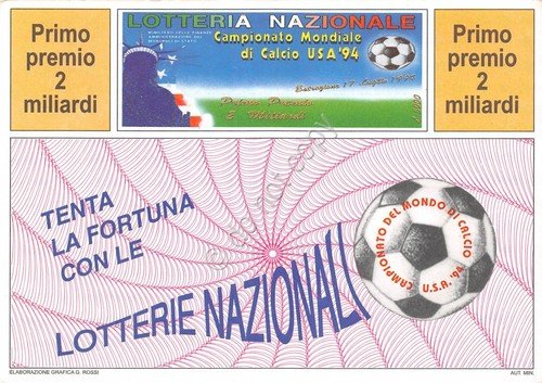 Lotteria Nazionale cartolina Campionato Mondiale di Calcio USA 1994