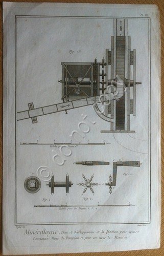 Macchina per estrazione - Mineralogia - Incisione XVIII Secolo - Bernard Fecit