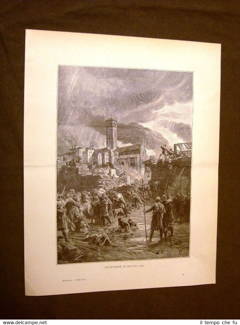 Medioevo d'Italia La distruzione di Milano nel 1162 Incisione di L. Pogliaghi