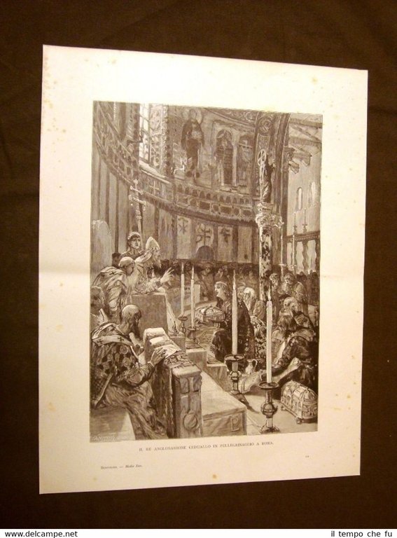 Rara stampa Estratta da pubblicazione dei primi del 1900 Su carta spessa e non retroscritta Medioevo d'Italia Il Re anglosassone Ceduallo in pellegrinaggio a Roma Incisione di Lodovico Pogliaghi SDI-017 Dimensioni Cm 27,00 x 36,00 Qualora vogliate delle scansioni migliori contattateci, soddisferemo ogni vostra richiesta. PaypalCarta di creditoBonifico bancario Accuratamente adagiate su un cartoncino e protette da pellicola trasparente rigida,il tutto viene inserito dentro plico di adeguate dimensioni per proteggerne l'integrità.