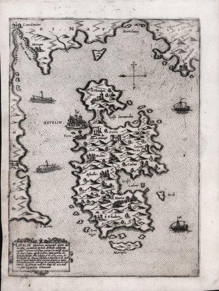 Rara tavola, parte del celebre "Isole Famose" di Camocio.Tra il 1560 ed 1575 Camocio pubblicò circa quaranta carte di grande formato e molte furono le carte di piccolo formato pubblicate sciolte tra il 1566 e il 1574, che andarono successivamente a formare il volume noto col nome "Isole famose, porti, fortezze e terre marittime sottoposte alla Serenissima Signoria di Venetia, ed altri Principi Christiani, et al Signor Turco, nouamente poste in luce. In Venetia alla libreria del segno di San Marco". Le carte inserite nell’isolario di Camocio hanno la lastra ritoccata e un numero sequenziale aggiunto, mentre le prime prove sono caratterizzate dalla grande qualità di stampa e dall’assenza del numero. Gli esemplari con la numerazione sono, invece, quelli inseriti nelle edizioni dell'isolario edite da Donato Bertelli - imprint In Venetia alla libreria del segno di San Marco. Tale edizione, sebbene priva di data, risale a dopo il 1575, anno in cui il Camocio scomparve durante l'epidemia di pestilenza a Venezia e gran parte della sua tipogrfaia fu acquisita dal Bertelli.Raro primo stato, avanti la numerazione. Acquaforte e bulino, in buono stato di conservazione.Bibliografia: S. Bifolco, Città e Fortezze Principali del Mondo, in Bifolco-Ronca "Cartografia e Topografia Italiana del XVI secolo. Catalogo ragionato delle opere a stampa" (2018), pp. 126, 140-141. THE RARE FIRST STATE of the map of the island of Lesbos. From Camocio's "Isole Famose".This work, as was usual for Camocio and his other contemporary publishers, was on the market as loose map and later included in the "Isole famose, porti, fortezze e terre marittime sottoposte alla Serenissima Signoria di Venetia, ed altri Principi Christiani, et al Signor Turco, nouamente poste in luce. In Venetia alla libreria del segno di San Marco". The issue with the numbers are, instead, those inserted in the editions of the book published by Donato Bertelli - showing the imprint In Venetia alla libreria del segno di San Marco. This edition, although without date, dates back to after 1575, the year in which the Camocio disappeared during the pestilence epidemic in Venice and much of its typography was acquired by Bertelli.Etching with engraving, in good condition.Bibliografia: S. Bifolco, Città e Fortezze Principali del Mondo, in Bifolco-Ronca "Cartografia e Topografia Italiana del XVI secolo. Catalogo ragionato delle opere a stampa" (2018), pp. 126, 140-141. Cfr. G. Tolias, Mapping Greece, 0402; Zacharakis, A Catalogue of Printed Maps of Greece, 793.