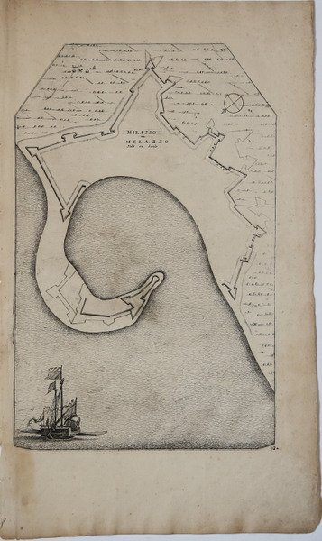 Opera per la prima volta pubblicata nel ' Theatrum Civitatum et admirandorum Italiae, stampato da Johannes Blaeu ad Amsterdam nel 1663. Esemplare tratto dal ' Nouveau Theatre de l'Italie ' pubblicato ad Amsterdam nel 1704/5 da Pierre Mortier e ristampato da R. Alberts nel 1724. Johannes Blaeu, durante la sua lunga attività editoriale pubblica tre volumi sulle città italiane. Nel 1663 i primi tre, suddivisi in Stato della Chiesa, Roma e Regno di Napoli e Sicilia. Alla sua morte i suoi eredi danno alla luce altri due volumi datati 1682 incentrati sulle città del Piemonte e della Savoia, poi ristampati da altri editori nel 1693 e 1697. ' Il francese Pierre Mortier pubblica una ristampa nel 1704/5, intitolata ' Nouveau Theatre de l’Italie. L’opera è in quattro volumi e comprende le lastre del Blaeu, ritoccate e modificate in piccola parte, integrate dall’aggiunta di numerose nuove mappe di proprio disegno, raffiguranti le città della parte settentrionale della penisola, racchiuse nel primo volume dell’opera. L’atlante del Mortier venne pubblicato con testo latino, francese ed olandese. La particolarità che differenzia le due edizioni di Blaeu e Mortier è rappresentata dal fatto che il testo non è al verso della singola mappa (che quindi è bianca nel retro), ma si trova all’inizio di ogni singolo volume. Il grande successo dell’opera diede origine ad un’ulteriore ristampa, praticamente identica, curata da R. Alberts ed edita nel 1724/5. Le opere tratte dalla prima edizione del Blaeu, 1663, sono caratterizzate dalla presenza del testo al verso, qui assente. Incisione in rame, in buono stato di conservazione. Bibliografia Koeman pp. 332/338, Cremonini pp. 83-90. Work first included in ' Theatrum Civitatum et Admirandorum Italiae ad aevi veteris & praesentis temporis faciem expressum à Ioanne Blaeu G. F., ' printed by Johannes Blaeu, Amsterdam, 1663. Example taken from ' Nouveau Theatre de l'Italie ' - Amsterdam nel 1704/5 - by Pierre Mortier or from the da R. Alberts issue (1724). Without descriptive text on the back. The ' Theatrum Civitatum et Admirandorum Italiae ' is the first monumental town book entirely covering Italy, preceded by the "pocket-size" ' Italia Hodierna ' by Jodocus Hondius jr. (1627) and realized in likely competition with Johannes Janssonius who, in 1657, published the ' Theatrum praecipuarum urbium, ' containing a volume dedicated to Italy. Johannes Blaeu, during his long editorial activity published three volumes on Italian cities. In 1663 the first three, divided into the State of the Church, Rome and the Kingdom of Naples and Sicily. At his death his heirs gave birth to two more volumes dated 1682 focused on the cities of Piedmont and Savoy, then reprinted by other publishers in 1693 and 1697. Pierre Mortier publishes a reprint in 1704/5, entitled ' Nouveau Theatre de l'Italie. The work is in four volumes and includes the plates of Blaeu, retouched and modified in small part, supplemented by the addition of several new maps of his own design, depicting the cities of the northern part of the peninsula, enclosed in the first volume of the work. Mortier's atlas was published with Latin, French and Dutch texts. The great success of the work gave rise to a further reprint, virtually identical, edited by R. Alberts and published in 1724/5. Literature Koeman, ' Atlas Neerlandici, pp. 332/338; Cremonini pp. 49-52, 39. Cfr.