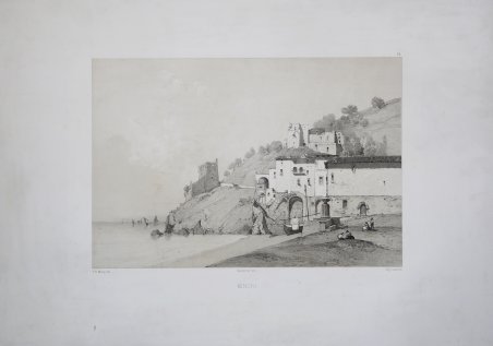Rara litografia tinta disegnata “d'apres nature” da Frederic Bourgeois de Mercey, litografata da Eugene Ciceri e stampata dall’editore Lemercier a Parigi. Venne pubblicata nella raccolta ' La Toscana e le Midi d’Italie. ' Notes de voyages, étude et recit, ' impressa nel 1858. Frédéric Bourgeois de Mercey, nasce il 20 maggio 1803 a Parigi e muore il 6 settembre 1860 al castello di La Faloise. Fu un pittore, scrittore di viaggi, critico d'arte e romanziere francese. Nasce a Parigi da Louis-Frédéric, vissuto nel regno di Napoli al servizio Gioacchino Murat. Ritornato in Francia alla fine del Decennio, il padre del nostro scrittore si dedicò allo studio delle Belle Arti. Questo clima culturale orientò le scelte di Frédéric Bourgeois. Inizialmente si dedicò alla pittura specializzandosi nel paesaggio (sue vedute sono conservate nei grandi musei francesi); quindi fu chiamato al ministero dell’Interno come responsabile delle Belle Arti, fino a raggiungere il grado di ministro di Stato. Visitò lungamente la Penisola, in particolare la Toscana e il Mezzogiorno. Uomo politico di orientamento democratico, profondo conoscitore del mondo classico e medioevale italiano, pubblicò numerose opere. Si occupò della Costa in un articolo per la “Revue des Deux-Mondes” del 1840 ' La République d’Amalfi, riversato, successivamente, nel volume ' La Toscana e le Midi d’Italie. Notes de voyages, étude et recit ' (Parigi 1858), accompagnato da un album di litografie basate sui numerosi disegni che egli andava riprendendo nei suoi tour. Litografia tinta, in ottimo stato di conservazione. ' ' ' ' ' ' ' Rare tinted lithograph drawn "d'apres nature" by Frederic Bourgeois de Mercey, lithographed by Eugene Ciceri and printed by Lemercier in Paris. It was published in the collection ' La Toscana e le Midi d'Italie. ' Notes de voyages, étude et recit, ' published in 1858. Frédéric Bourgeois de Mercey, was born on May 20, 1803 in Paris and died on September 6, 1860 at La Faloise Castle. He was a French painter, travel writer, art critic and novelist. He was born in Paris to Louis-Frédéric, who lived in the kingdom of Naples in the service of Joachim Murat. Returning to France at the end of the Decade, our writer's father devoted himself to the study of the fine arts. This cultural climate directed Frédéric Bourgeois' choices. Initially he devoted himself to painting, specializing in landscape (his views are preserved in the great French museums); then he was called to the Ministry of the Interior as head of Fine Arts, until he reached the rank of minister of state. He visited the Peninsula at length, particularly Tuscany and the Mezzogiorno. A politician with a democratic orientation, a profound connoisseur of the classical and medieval Italian world, he published numerous works. He dealt with the Coast in an article for the 1840 "Revue des Deux-Mondes" La République d'Amalfi, poured, later, into the volume ' La Toscana e le Midi d'Italie. ' Notes de voyages, étude et recit ' (Paris 1858), accompanied by an album of lithographs based on the many drawings he was taking on his tours. ' ' ' ' ' ' Tinted lithograph, very good condition. Cfr.