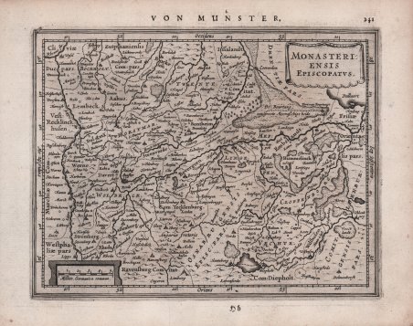 Mappa in miniatura tratta dall’Atlas minor, Das ist: Eine kurtze, jedoch gründliche Beschreibung der gantzen Weldt. ' Incisa da Abraham Goos o Pieter van den Keere, venne pubblicata per la prima volta da Johannes Janssonius nel 1628. L'Atlas Minor ' di Gerard Mercator fu concepito da Jodocus Hondius nel 1607 come edizione ridotta del popolare ' Atlas ' di Mercator in folio. L'Atlas Minor ' doveva essere più grande di un atlante tascabile, ma più piccolo di un atlante in folio, e aveva un prezzo adeguato a raggiungere una diversa clientela. Ci furono tre diverse edizioni dell'Atlas Minor ' pubblicate da autori diversi, ognuna con una nuova serie di mappe incise in rame. Jodocus Hondius pubblicò la prima edizione tra il 1607 e il 1621, e successivamente vendette le tavole in rame ad editori inglesi; tra il 1635-39 fu pubblicata un'edizione inglese dell’opera utilizzando molte delle tavole originali. Johannes Janssonius volle competere anche nel mercato dei “piccoli” atlanti e fece incidere nuove lastre di rame da Pieter van den Keere e Abraham Goos per la propria edizione dell’Atlas Minor, pubblicata in più lingue tra il 1628 e il 1651 La terza e ultima versione fu pubblicata da Jan Evertsz. Cloppenburch (o Cloppenburg) tra il 1630 e il 1734, con nuove mappe incise principalmente sempre da Pieter van den Keere. "Shortly after the publication of the big folio-atlases the need was apparantly felt for a smaller-sized atlas, one that would be handier, and, above all, cheaper, so that a larger public might have access to the use of maps. The publication of the ' Atlas Minor ' appeared to be a great success for Hondius; the first Latin edition was in great demand. The copperplates of the first atlases minor were most almost certainly engraved by Jodocus Hondius himself. After 1621, the copperplates of the ' Atlas Minor ' were sold to a London editor. Firstly, they appeared in ' Purchas his Pilgrinies, printed in 1625 by William Stansby for Henry Featherstone. Next they were used for the translation of the Mercator-atlas, printed in small folio under the title ' Historia mundi, or Mercators atlas, ' by Thomas Cotes for Michael Sparke and Samuel Cartwight in 1635". (cf. Koeman II Me 191). "As with the ' Theatrum ' of Abraham Ortelius, Jodocus Hondius planned a reduced size version of Gerard Mercator's folio atlas. Just one year after his first edition he published his Latin text ' Atlas Minor ' in collaboration with Jan Jansz. and Cormelis Claesz. The arrangement between these three is not understood clearly but Hondius is believed to have been the owner of the copperplates. Cartographically this is taken directly from the folio maps by Hondius in 1606 [.]. with the inevitable loss of detail due to the reduction” (cf. Burden, ' The Mapping of North America, 153). ' Johannes Janssonius (1588-1664) era figlio di un omonimo tipografo, editore e libraio di Arnhem. Nel 1612 sposò Elisabetta Hondius, figlia di Jodocus Hondius I, e nello stesso anno fondò una propria casa editrice ad Amsterdam. Alla morte di Jodocus I, nello stesso anno, iniziò ad aiutare la vedova di Hondius a continuare la pubblicazione dell'atlante di Mercatore e Hondius. Sia la vedova di Hondius, Colette, sia il figlio maggiore di Hondius, Jodocus II, morirono nel 1629; Janssonius unì quindi le forze con il figlio minore di Hondius, Henricus, per una revisione dell'Atlas Novus, a partire dal 1638. Acquaforte, in ottimo stato di conservazione. Dall’edizione tedesca dell’Atlas Minor, stampata ad Amsterdam nel 1648. Bibliografia Koeman IIIB, 352:33. A miniature map taken from ' Atlas minor, Das ist: Eine kurtze, jedoch gründliche Beschreibung der gantzen Weldt. ' Engraved by Abraham Goos or Pieter van den Keere, first issued by Johannes Janssonius in 1628. Mercator's ' Atlas Minor ' was conceived by Jodocus Hondius in 1607 as a reduced-sized edition of the popular folio-sized Mercator Atlas. The ' Atlas Minor ' was intended to be larger than a pocket atlas, yet smaller than the folio atlas, and were priced accordingly to reach a new market. There were three different editions of the ' Atlas Minor ' published by different authors, each with a new set of copperplates. Jodocus Hondius published the first edition from 1607-1621, and subsequently sold the copperplates to parties in England between 1621-1625, after which an English edition was published using many of the original plates in 1635-39. Johannes Jansson wanted to compete in the small atlas market as well, and had new copperplates engraved by Pieter van den Keere and Abraham Goos for his own edition published in multiple languages between 1628-51. The third and final edition was published by Jan Evertsz. Cloppenburch (or Cloppenburg) between 1630-1734 (some without text), with new maps engraved primarily by Pieter van den Keere. "Shortly after the publication of the big folio-atlases the need was apparantly felt for a smaller-sized atlas, one that would be handier, and, above all, cheaper, so that a larger public might have access to the use of maps. The publication of the ' Atlas Minor ' appeared to be a great success for Hondius; the first Latin edition was in great demand. The copperplates of the first atlases minor were most almost certainly engraved by Jodocus Hondius himself. After 1621, the copperplates of the ' Atlas Minor ' were sold to a London editor. Firstly, they appeared in ' Purchas his Pilgrinies, printed in 1625 by William Stansby for Henry Featherstone. Next they were used for the translation of the Mercator-atlas, printed in small folio under the title ' Historia mundi, or Mercators atlas, ' by Thomas Cotes for Michael Sparke and Samuel Cartwight in 1635". (cf. Koeman II Me 191). "As with the ' Theatrum ' of Abraham Ortelius, Jodocus Hondius planned a reduced size version of Gerard Mercator's folio atlas. Just one year after his first edition he published his Latin text ' Atlas Minor ' in collaboration with Jan Jansz. and Cormelis Claesz