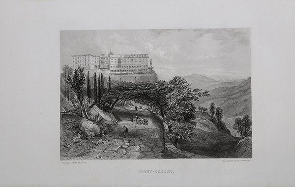 Veduta tratta dal “Voyage pittoresque en Italie. Partie Méridionale et en Sicile. Illustrations de MM. Rouargues Fréres. Paris, Morizot, s.a. Imprimerie Gratiot” di Paul de Musset.Si tratta di una deliziosa e dotta guida attraverso le città ed i borghi del Centro Sud d'Italia, che contiene 23 incisioni dei fratelli Rouargue.Il viaggio di Paul in Italia durò quasi un anno. Partito nel dicembre del 1842, tornò nell’autunno dell’anno successivo. A Marsiglia s’imbarcò sulla nave Pharamond che lo portò a Genova, dove soggiornò circa un mese. Da Genova, il bastimento toscano Leopoldo lo condusse a Napoli, dove si trattenne tre mesi, facendo diverse gite nella regione. L’8 aprile si imbarcò sulla nave Mongibello in direzione di Messina, per un giro della Sicilia di circa sei settimane. Tornato a Napoli, andò in diligenza per lo Stato Pontificio fino a Roma, dove rimase quaranta giorni. Poi fu la volta di Firenze, Bologna, Ferrara, Padova, Venezia. Incantato dalla città così cara al fratello avrebbe desiderato trattenervisi a lungo ma, mancandogli il denaro, fu costretto a proseguire per Milano. Dopo una visita al lago di Como, prese la via del ritorno passando per il San Gottardo, Basilea e Strasburgo. Questo l’itinerario, secondo il resoconto che ne viene fatto nella prima versione, pubblicata nel 1845 col titolo Course en voiturin (Italie et Sicile).Negli anni 1855-1856 uscì un’altra versione molto estesa dello stesso viaggio: due grossi volumi di più di cinquecento pagine ciascuno, intitolati Voyage pittoresque en Italie. Partie septentrionale, e Voyage pittoresque en Italie (Partie méridionale) et en Sicile. Incisione in rame, in ottimo stato di conservazione.Bibliografia: Vicaire V, 1314. Veduta tratta dal “Voyage pittoresque en Italie. Partie Méridionale et en Sicile. Illustrations de MM. Rouargues Fréres. Paris, Morizot, s.a. Imprimerie Gratiot” di Paul de Musset.Si tratta di una deliziosa e dotta guida attraverso le città ed i borghi del Centro Sud d'Italia, che contiene 23 incisioni dei fratelli Rouargue.Il viaggio di Paul in Italia durò quasi un anno. Partito nel dicembre del 1842, tornò nell’autunno dell’anno successivo. A Marsiglia s’imbarcò sulla nave Pharamond che lo portò a Genova, dove soggiornò circa un mese. Da Genova, il bastimento toscano Leopoldo lo condusse a Napoli, dove si trattenne tre mesi, facendo diverse gite nella regione. L’8 aprile si imbarcò sulla nave Mongibello in direzione di Messina, per un giro della Sicilia di circa sei settimane. Tornato a Napoli, andò in diligenza per lo Stato Pontificio fino a Roma, dove rimase quaranta giorni. Poi fu la volta di Firenze, Bologna, Ferrara, Padova, Venezia. Incantato dalla città così cara al fratello avrebbe desiderato trattenervisi a lungo ma, mancandogli il denaro, fu costretto a proseguire per Milano. Dopo una visita al lago di Como, prese la via del ritorno passando per il San Gottardo, Basilea e Strasburgo. Questo l’itinerario, secondo il resoconto che ne viene fatto nella prima versione, pubblicata nel 1845 col titolo Course en voiturin (Italie et Sicile).Negli anni 1855-1856 uscì un’altra versione molto estesa dello stesso viaggio: due grossi volumi di più di cinquecento pagine ciascuno, intitolati Voyage pittoresque en Italie. Partie septentrionale, e Voyage pittoresque en Italie (Partie méridionale) et en Sicile. Incisione in rame, in ottimo stato di conservazione.Bibliografia: Vicaire V, 1314. Cfr.