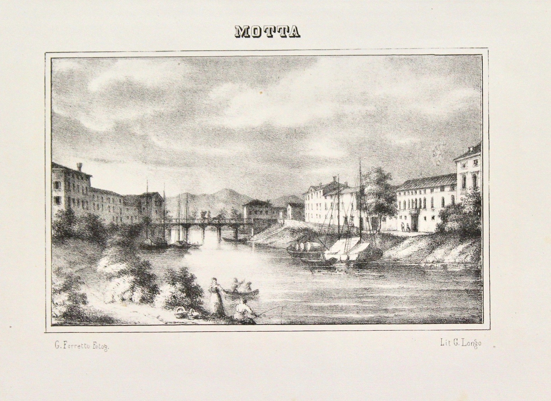 Litografia, 105x165 (immagine). Una delle rare stampe di Motta, eseguita sulla base di un soggetto fotografico di G. Ferretto. Non comune.