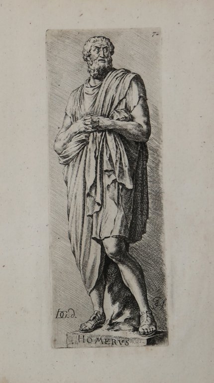 Acquaforte, 1670 circa, firmata in lastra con il monogramma. Una bella impressione, stampata su carta vergata coeva, con margini, ottime condizioni. La tavola è tratta da Signorum veterum icones, una collezione di sculture e statue romane di Jan de Bisschop (Johannes Episcopius) pubblicata per la prima volta nel 1668. Questa suite di 100 stampe di de Bisschop comprende sculture classiche conservate in collezioni olandesi e italiane nel XVII secolo. Le statue antiche erano molto apprezzate come opere d’arte, in particolare dagli artisti che ne ammiravano la loro rappresentazione di anatomia, drappeggi e pose. Questa suite comprende alcune delle sculture più importanti, da vari punti di vista, alle quali l’artista ebbe accesso. Alcune delle sculture classiche riprodotte nel Signorum veterum icones provengono dalle collezioni seicentesche di Gerrit Uylenburgh e Hendrik Scholten, alle quali de Bisschop aveva accesso diretto. La sequenza dell’opera è rigorosamente conforme alla tradizione classica: le prime illustrazioni riguardano le parti del corpo (questa sezione è stata lasciata incompiuta alla morte prematura di de Bisschop): statue complete, seguite da pose e suggerimenti per composizioni con più di una figura. Le stampe avevano lo scopo di fornire agli artisti esempi di pose ideali. Dai dipinti di Adriaen van der Werrff e Nicolaes Verkolje, è chiaro quanto siano stati influenti questi studi nello sviluppo della pittura classica olandese alla fine del XVII secolo. Etching, 1670 circa, signed on plate with the monogram. A fine impression, printed on contemporary laid paper, with margins, very good condition. The plate si taken from Signorum veterum icones, a collection of Roman sculptures & statues by Jan de Bisschop (Joh. Episcopius), first published in 1668. This suite of 100 prints by de Bisschop comprises of classical sculptures housed in Dutch and Italian collections in the seventeenth century. Ancient statues were highly regarded as works of art, in particular by artists who admired their representation of anatomy, drapery and poses. This suite includes some of the most important sculptures, from various view points, from which the artist could study. Some of the classical sculptures reproduced in de Bisschop’s Icones were from the seventeenth-century collections of Gerrit Uylenburgh and Hendrik Scholten, to which de Bisschop had direct access. The sequence of the Icones adhered strictly to the classical tradition: first the individual parts of the body were illustrated (this section was left unfinished at de Bisschop’s premature death), then completesculptures, followed by poses and suggestions for compositions with more than one figure. The prints were intended to provide artists with examples of ideal poses. From the paintings of Adriaen van der Werrff and Nicolaes Verkolje, it is clear just how influential these studies were in the development of Dutch classical painting during the late 17th century. Cfr.