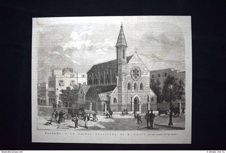 Palermo nel 1876 - La Chiesa Anglicana di Santa Croce Incisione del 1876