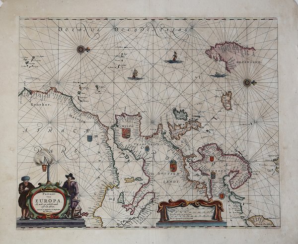 Acquaforte e bulino, 430x525 mm, firmata in lastra nel cartiglio in basso a sinistra: Gedruckt, en uytgegeven tot Amsterdam Bij Pieter Goos.Buona prova, impressa su carta vergata coeva, coloritura coeva con ritocchi, carta leggermente lisa, per il resto in buono stato di conservazione.Opera tratta da: De Zee-Atlas, Ofte Water-Weereld, Waer in vertoont werden alle de Zee-Kunsten Van het bekende des Aerd-Bodems. Seer dienstigh voor alle Schippers en Stuurlidienm Als oock voor alle Heeren en Kooplieden. Gesneden, gedruckt en uytgegeven t’ Amsterdam. By Pieter Goos, op de Texelse Kay, naest de Ramskoy, in de Zee-Spiegel, 1666.La carta ricalca fedelmente il modello di Blaeu del 1621, del quale rappresenta una semplice riduzione al formato in-folio dell’atlante nautico. Bibliografia: C. Koeman, Atlantes Neerlandici: Bibliography of Terrestrial, Maritime and Celestial Atlases and Pilot Books Published in the Netherlands up to 1880 Vol. IV, Amsterdam 1970, pp. 192-217, Goos 1 A-B (2); Mare Nostrum, a historic voyage across the Mediterranean Sea, Lussemburgo, 2003, p. 23; National Maritime Museum, Catalogue of the Library - Vol. Three, Atlas & Cartography, Londra, 1971, p. 83, n. 92 (n. 2); cfr. R. Shirley, Maps in the Atlases of the British Library, Londra, 2004, pp. 1172-1175. Etching and engraving, 430x525 mm, signed lower left, in the cartouche: Gedruckt, en uytgegeven tot Amsterdam Bij Pieter Goos.Good proof, printed on contemporary laid paper, contemporary old colouring, in good condition.Goos' general chart of the Atlantic, Europe and Africa, based upon Blaeu's Paskaert of 1621. From: De Zee-Atlas, Ofte Water-Weereld, Waer in vertoont werden alle de Zee-Kunsten Van het bekende des Aerd-Bodems. Seer dienstigh voor alle Schippers en Stuurlidienm Als oock voor alle Heeren en Kooplieden. Gesneden, gedruckt en uytgegeven t’ Amsterdam. By Pieter Goos, op de Texelse Kay, naest de Ramskoy, in de Zee-Spiegel, 1666.Bibliografia: C. Koeman, Atlantes Neerlandici: Bibliography of Terrestrial, Maritime and Celestial Atlases and Pilot Books Published in the Netherlands up to 1880 Vol. IV, Amsterdam 1970, pp. 192-217, Goos 1 A-B (2); Mare Nostrum, a historic voyage across the Mediterranean Sea, Lussemburgo, 2003, p. 23; National Maritime Museum, Catalogue of the Library - Vol. Three, Atlas & Cartography, Londra, 1971, p. 83, n. 92 (n. 2); cfr. R. Shirley, Maps in the Atlases of the British Library, Londra, 2004, pp. 1172-1175. Cfr. S. Bifolco, "Mare Nostrum, Cartografia nautica a stampa del Mar Mediterraneo" (2020), p. 131, tav. 52.